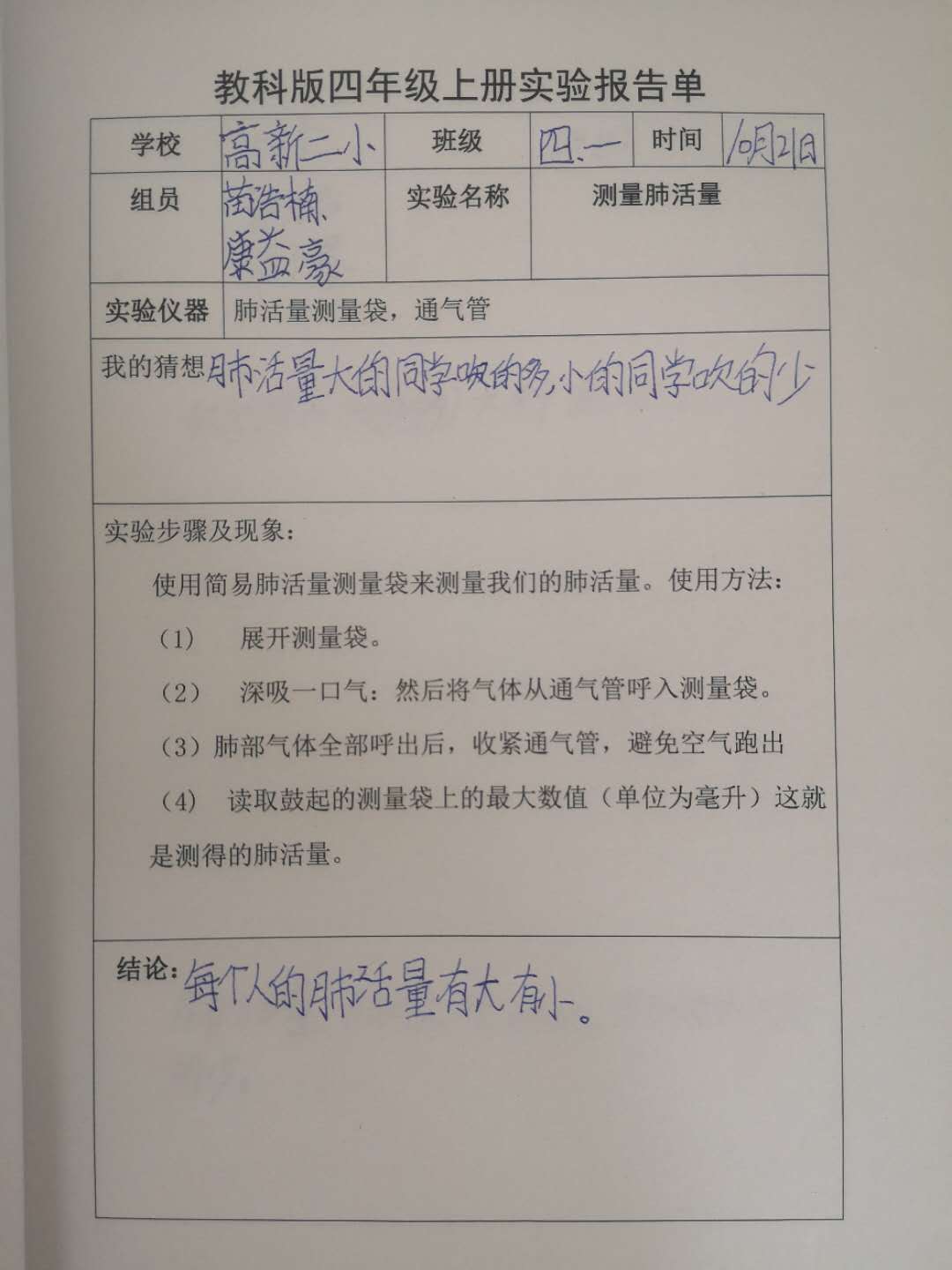 测量肺活量