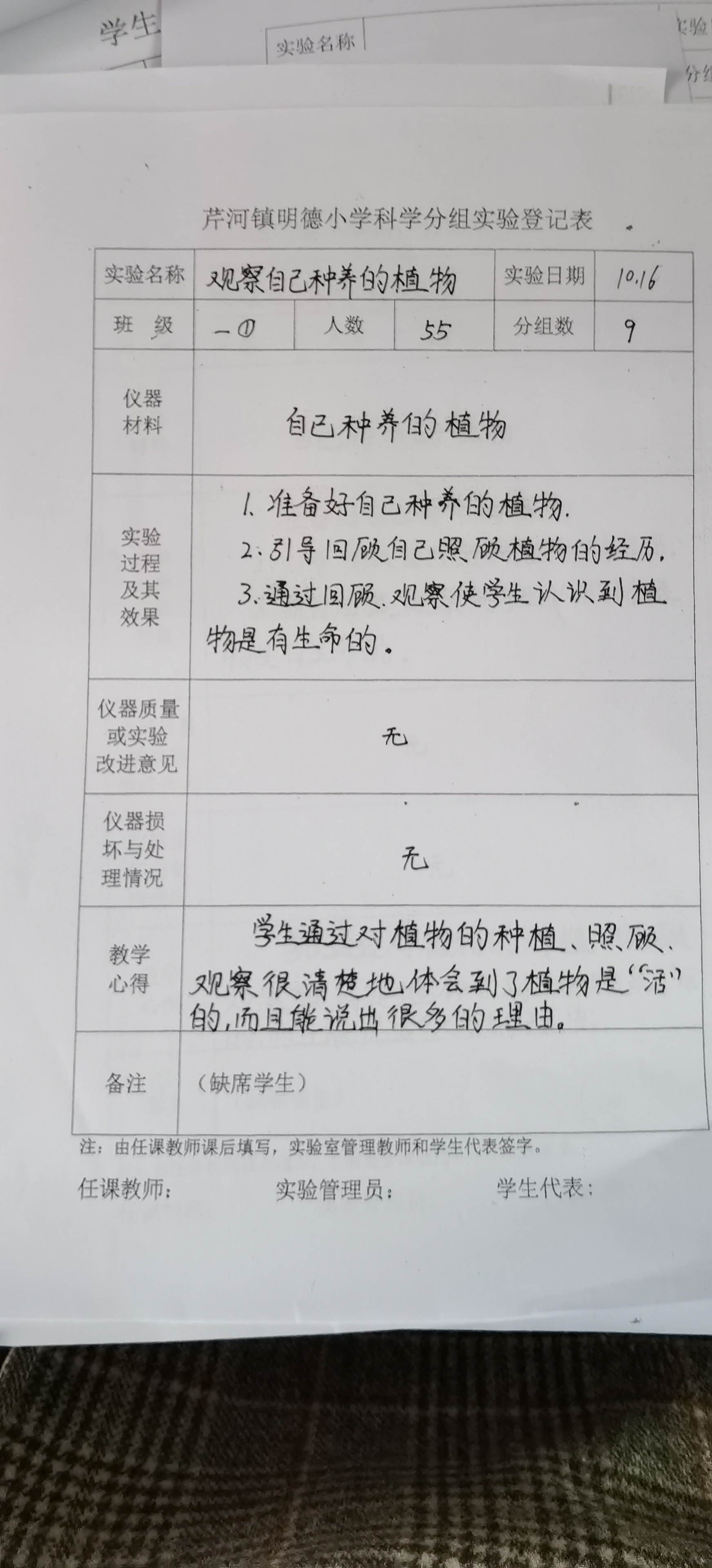 实验登记表