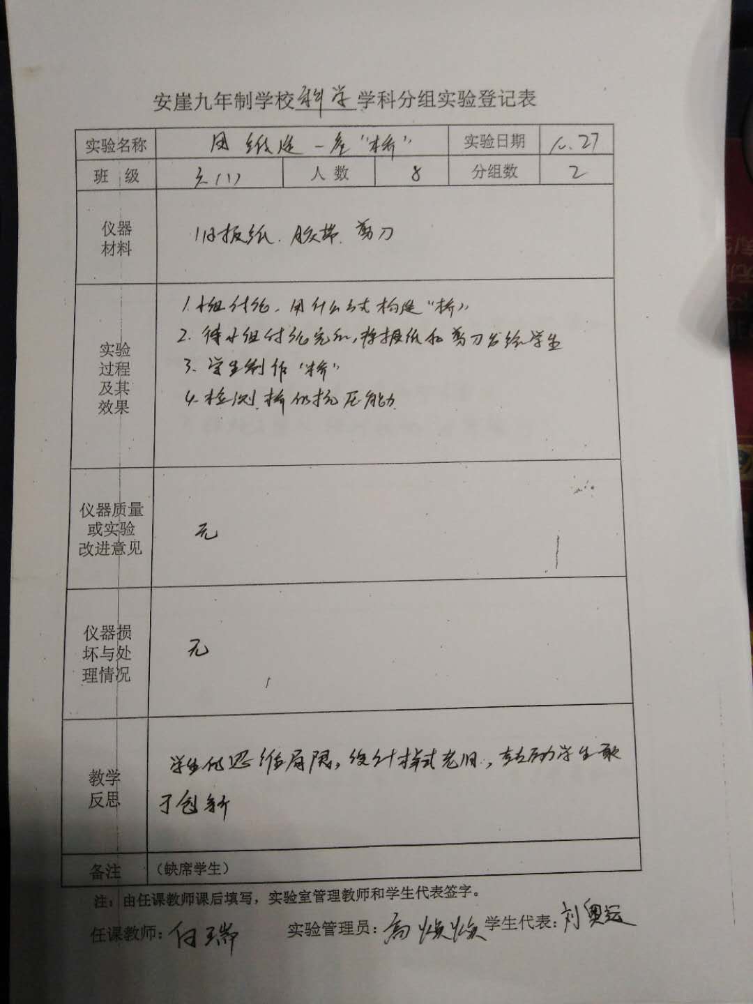 实验登记表