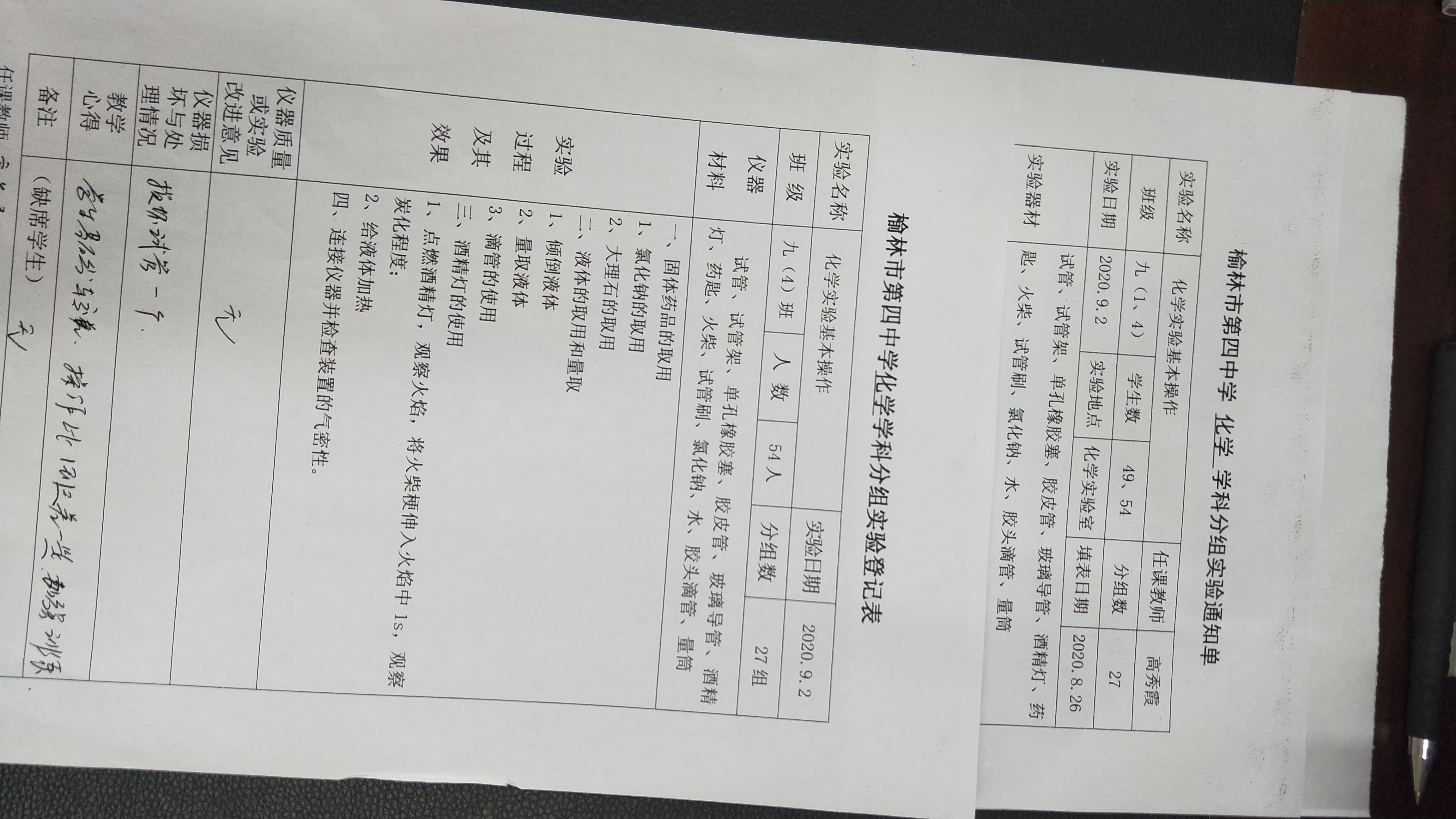 实验登记表