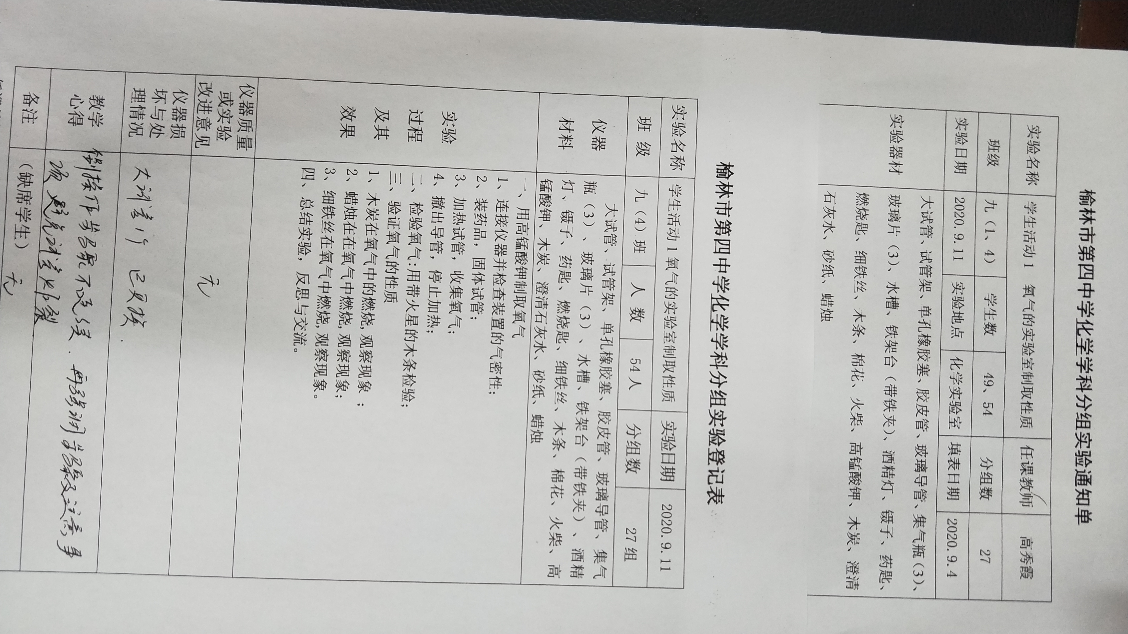 实验登记表