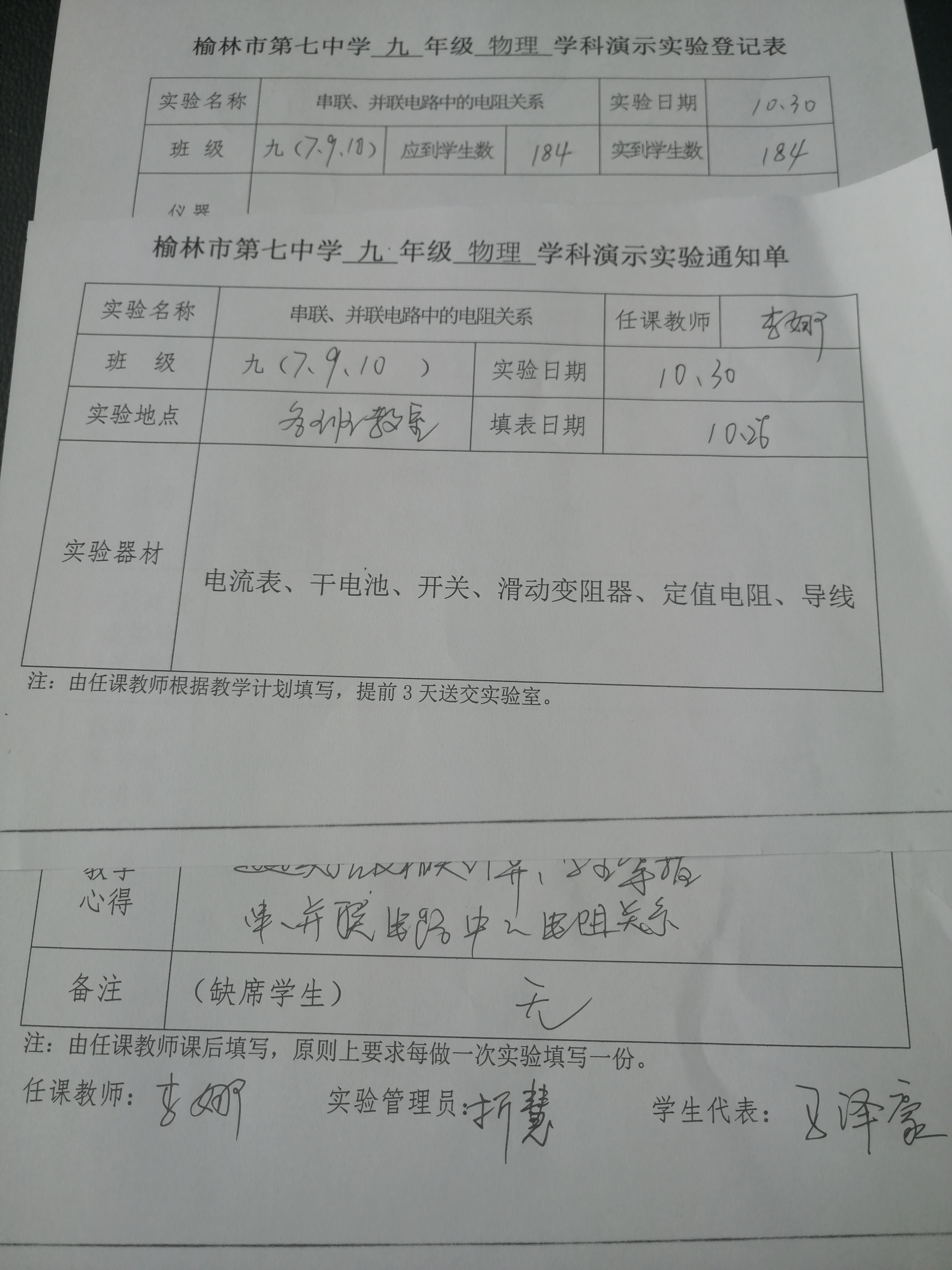 实验登记表