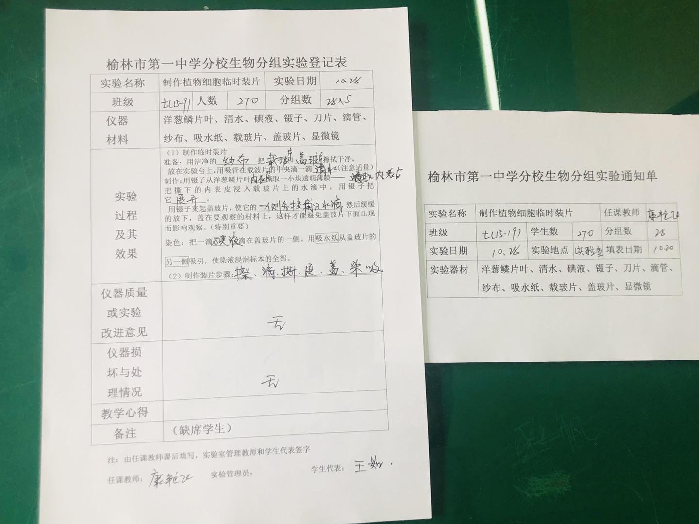 实验登记表