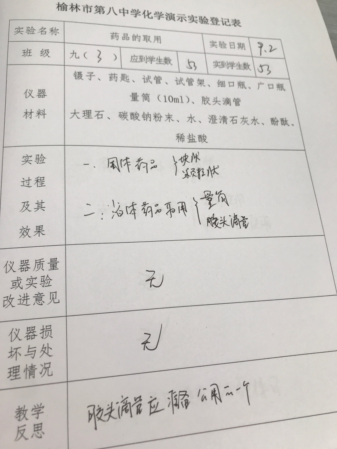 实验登记表