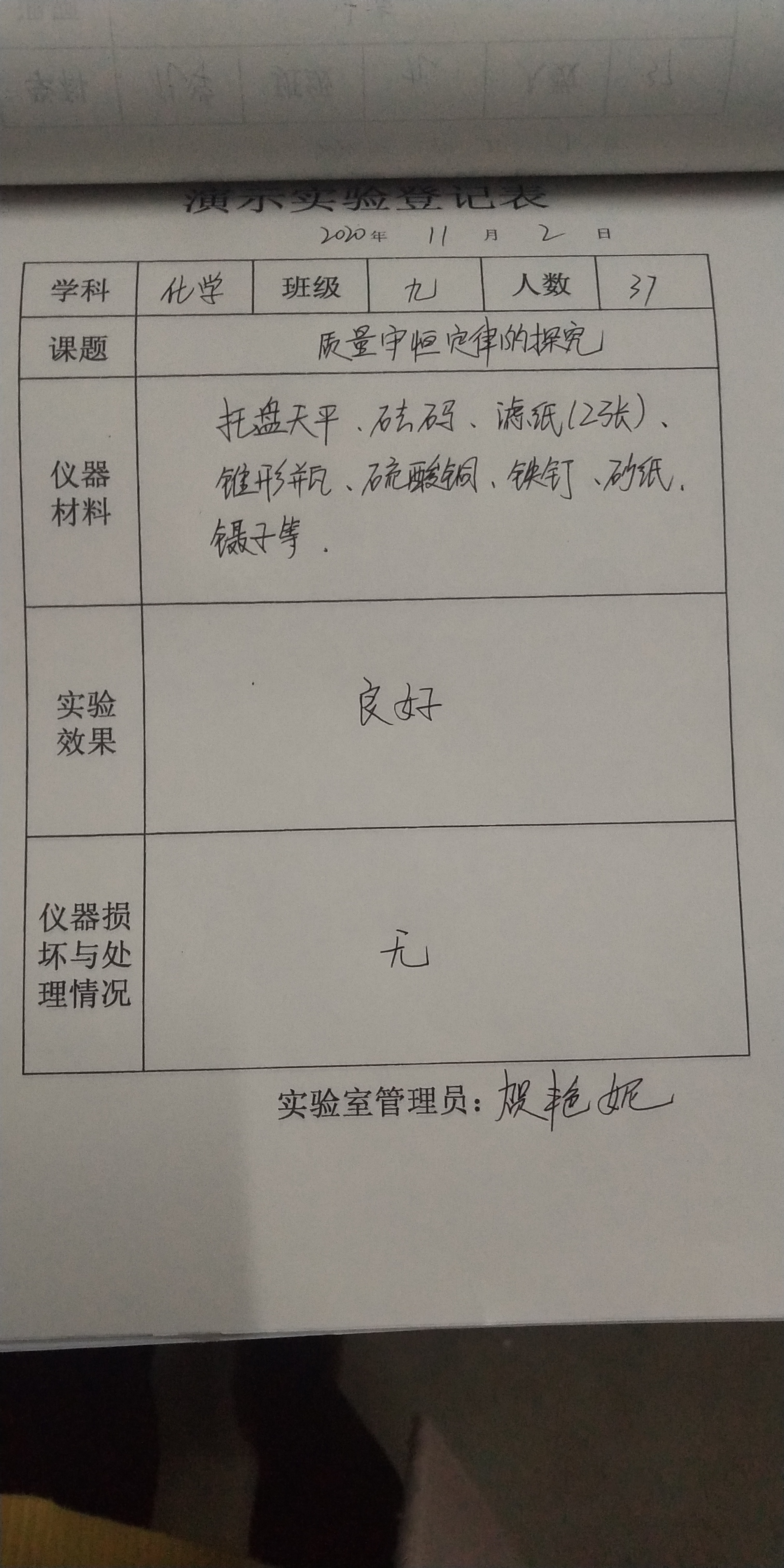 实验登记表