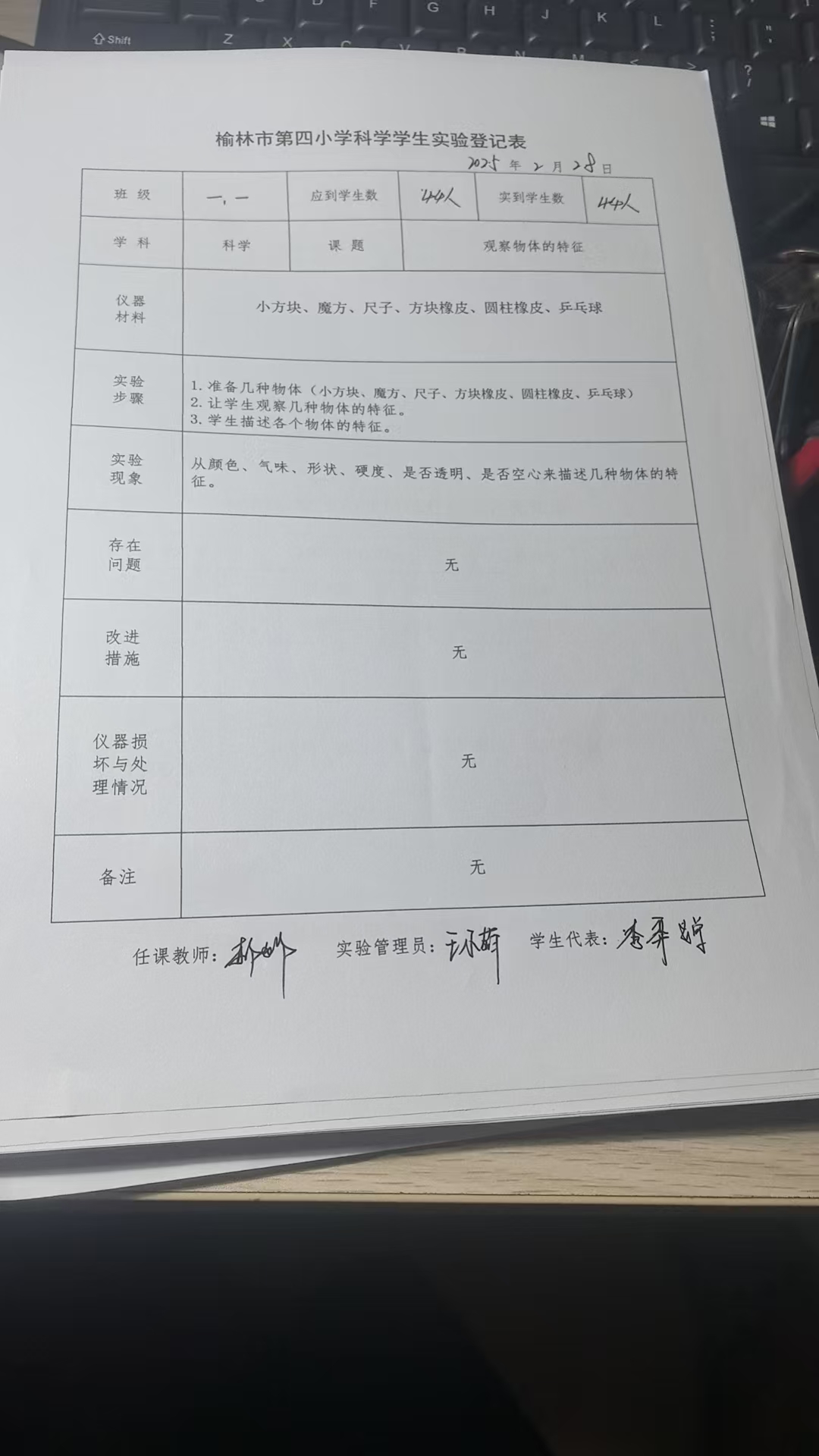实验登记表