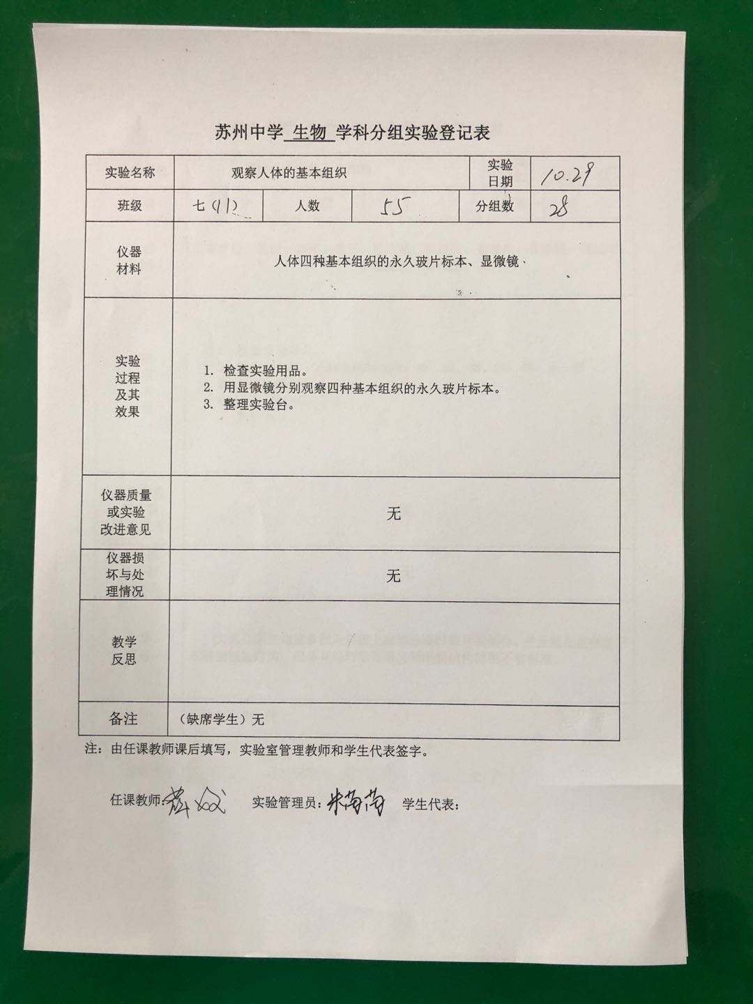 实验登记表