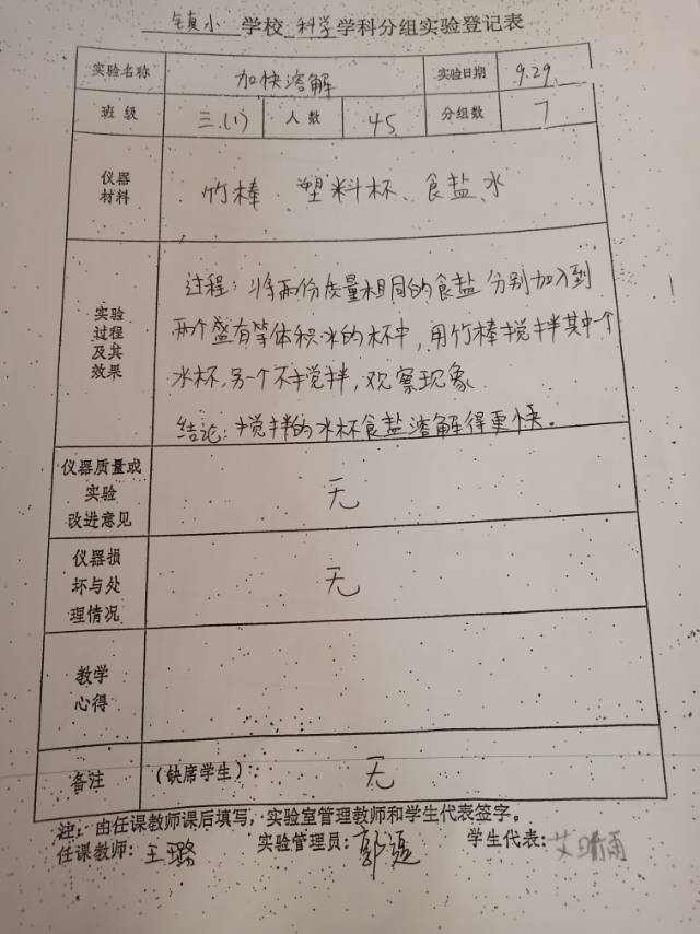 实验登记表