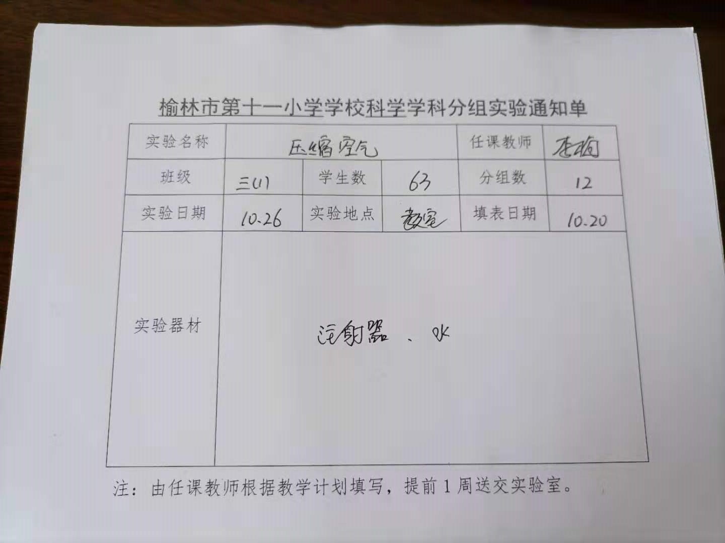 实验登记表