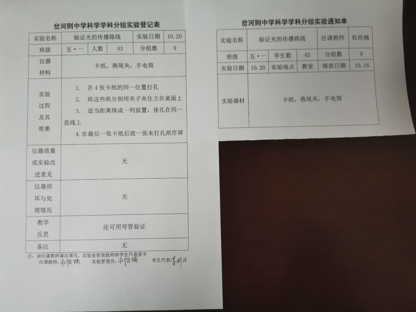 实验登记表