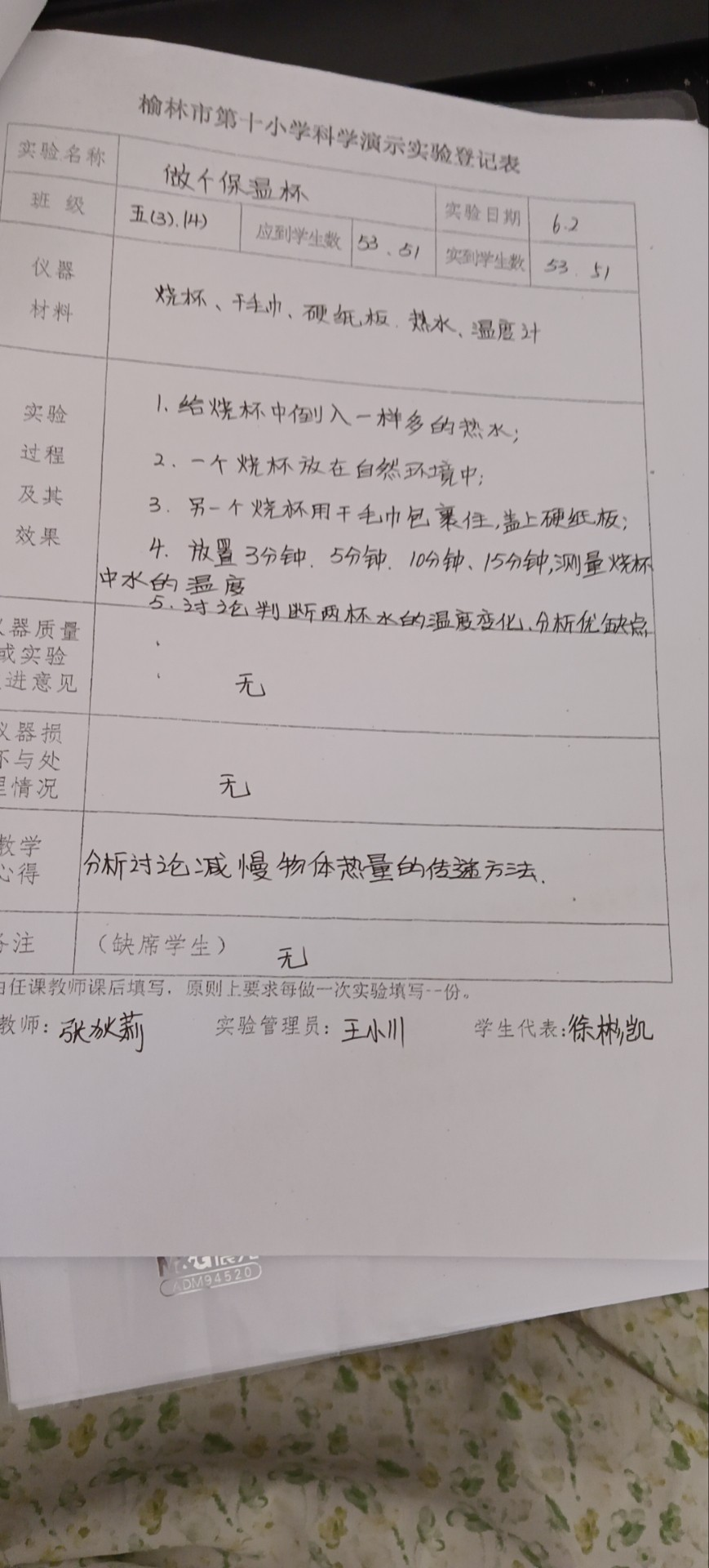 实验登记表