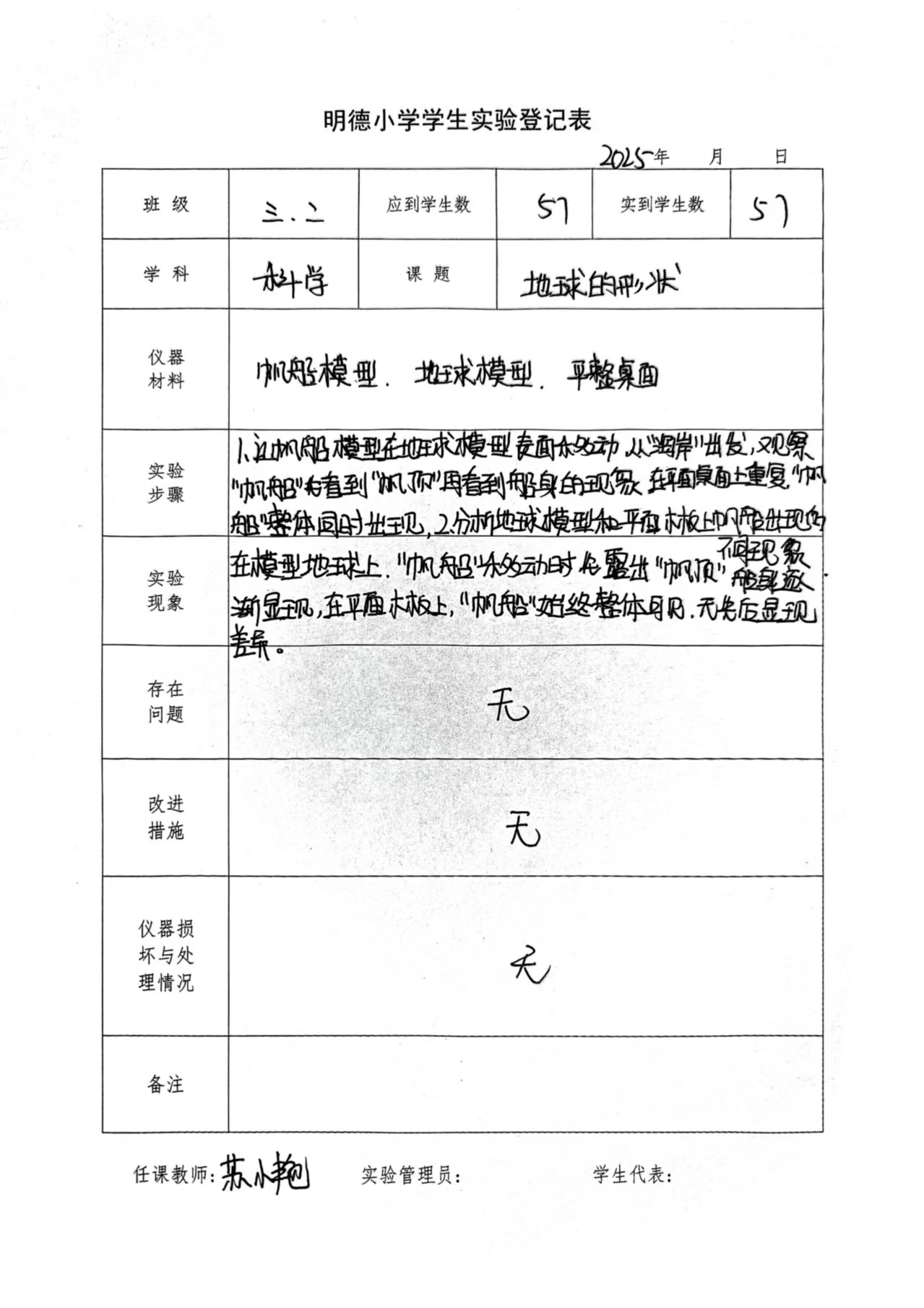实验登记表