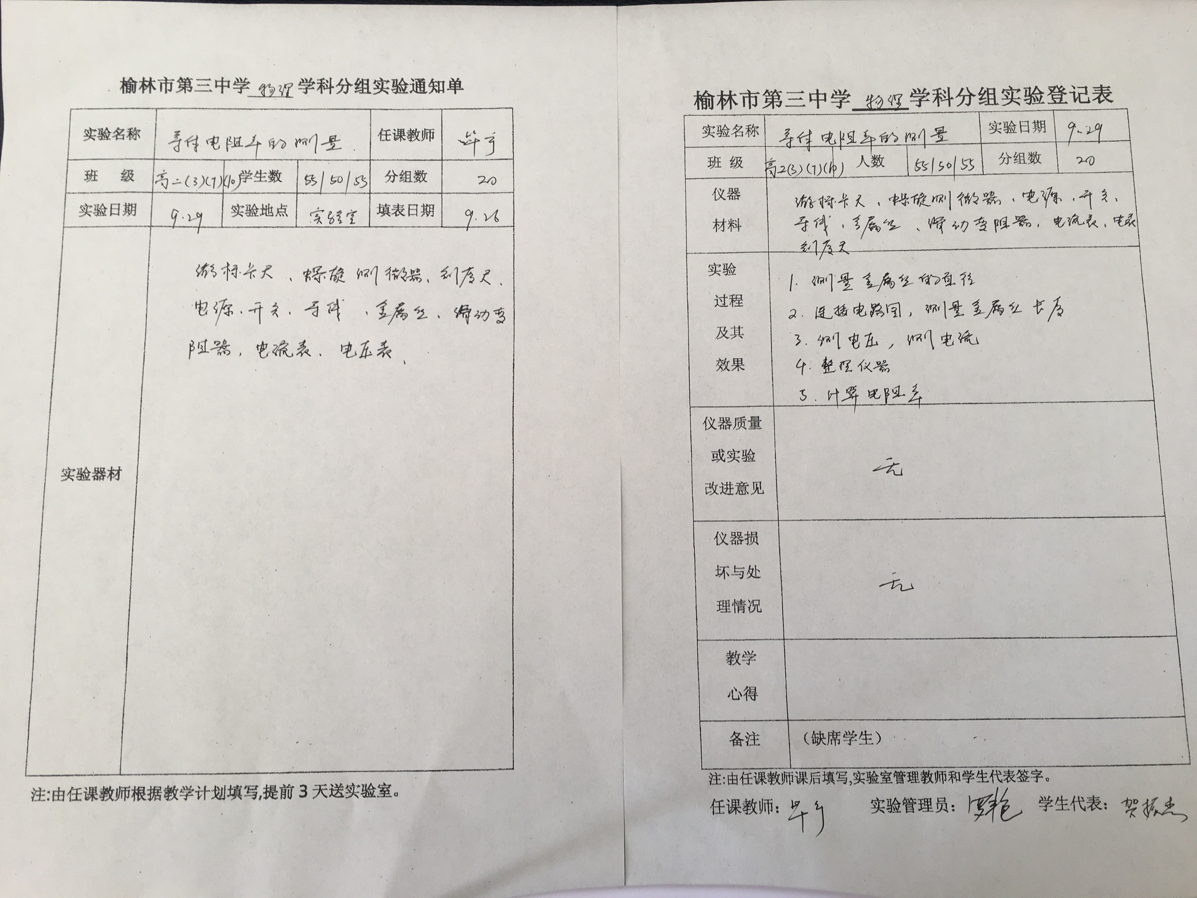 实验登记表