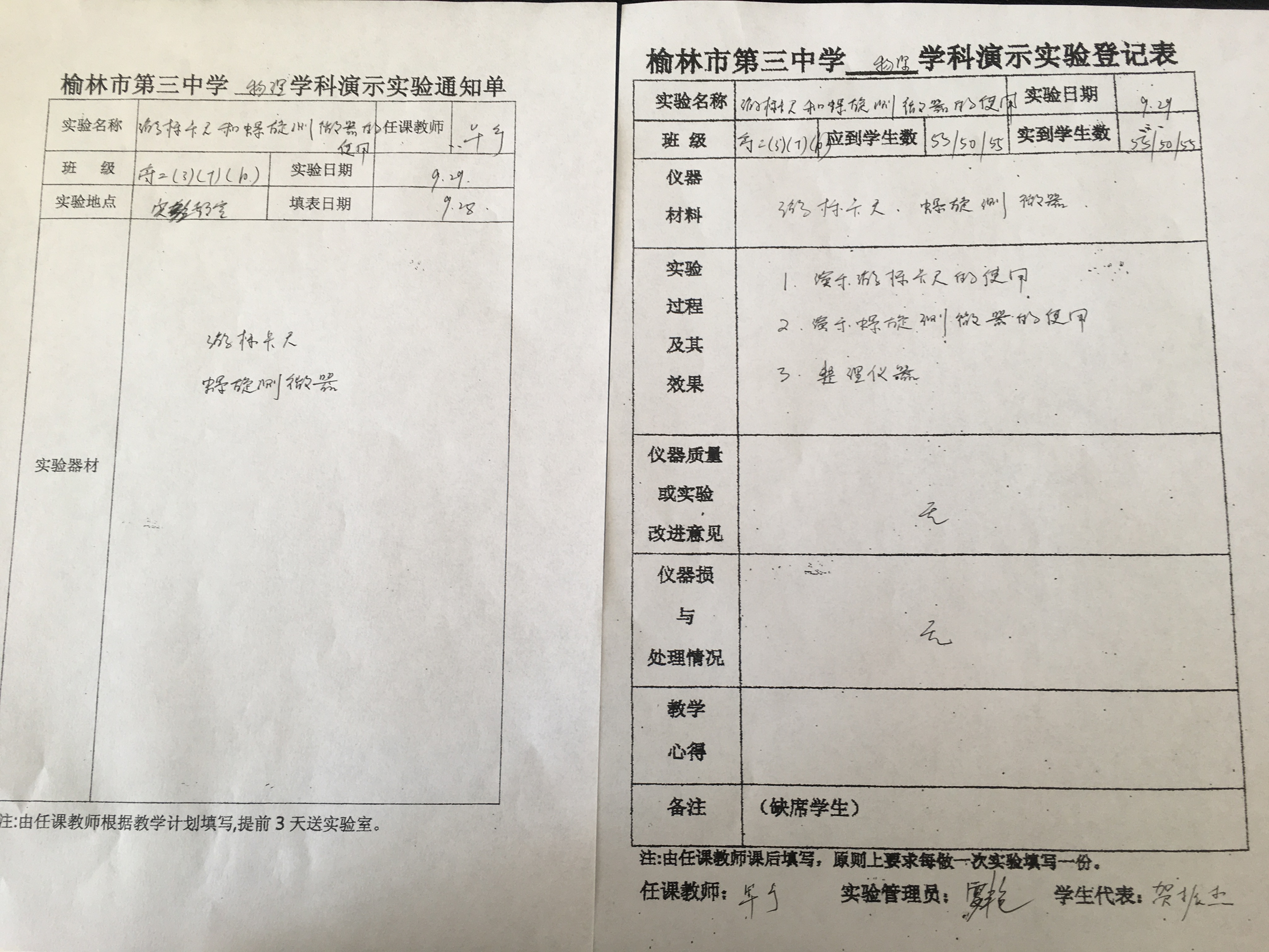 实验登记表