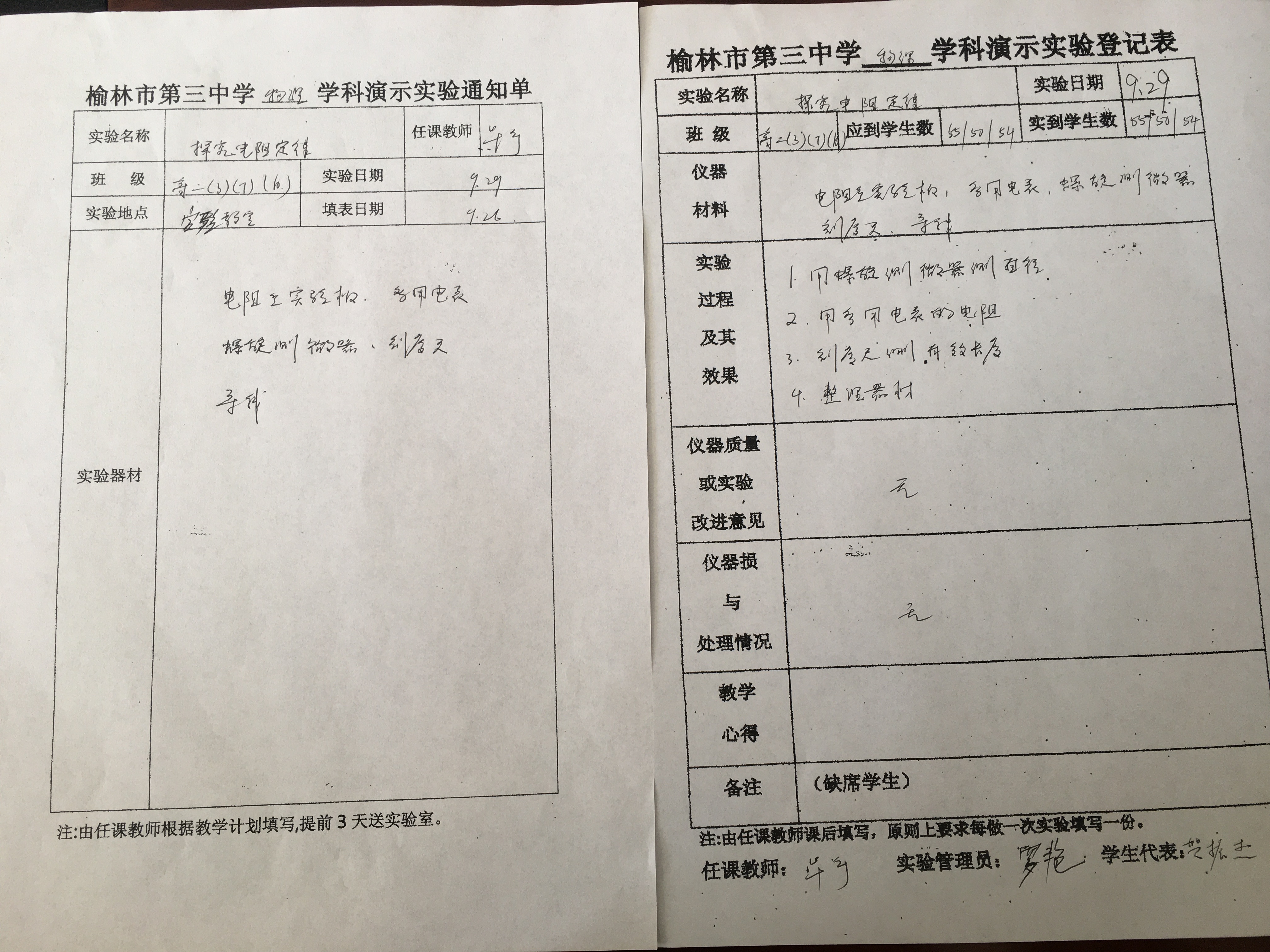 实验登记表