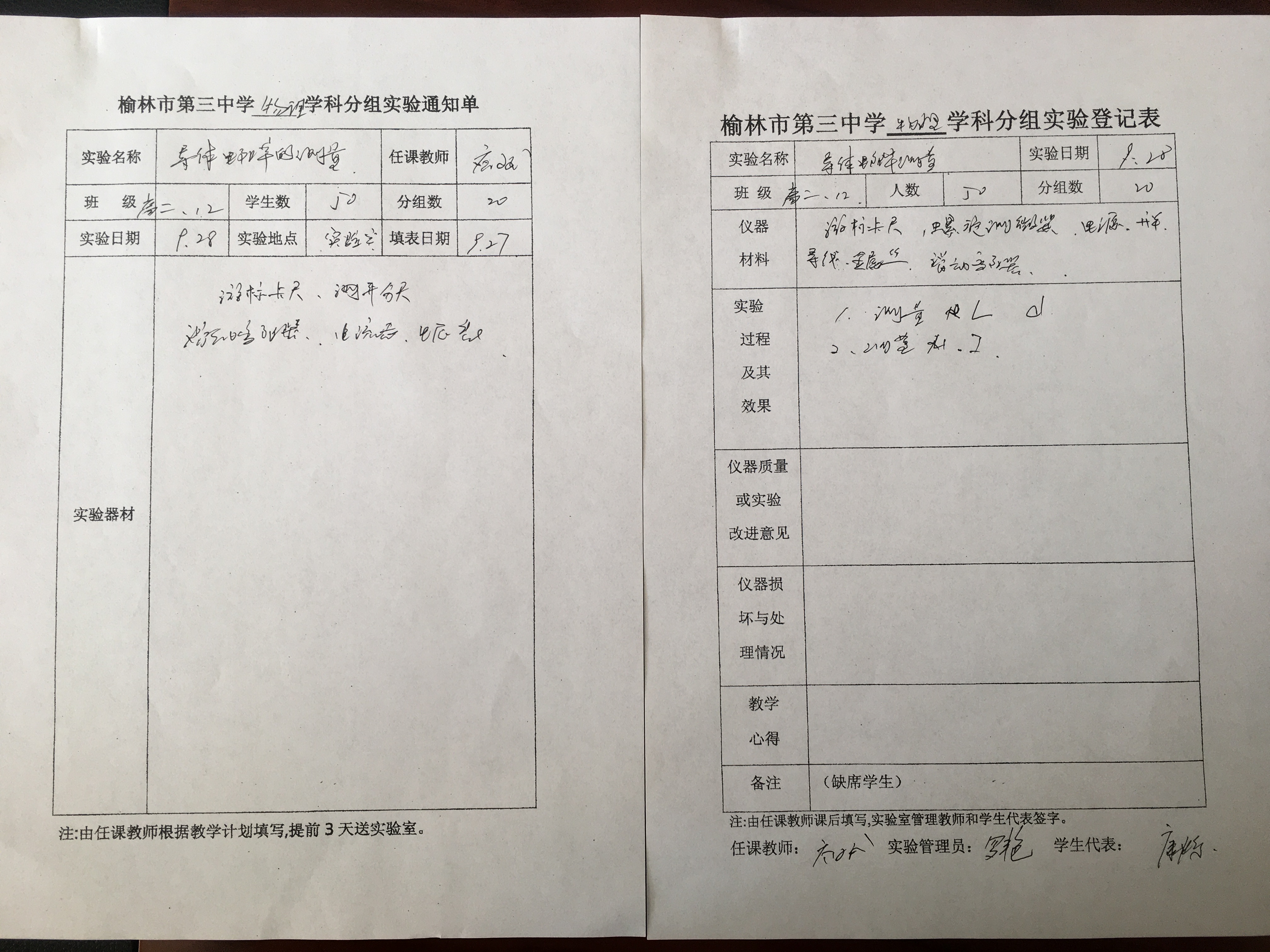 实验登记表