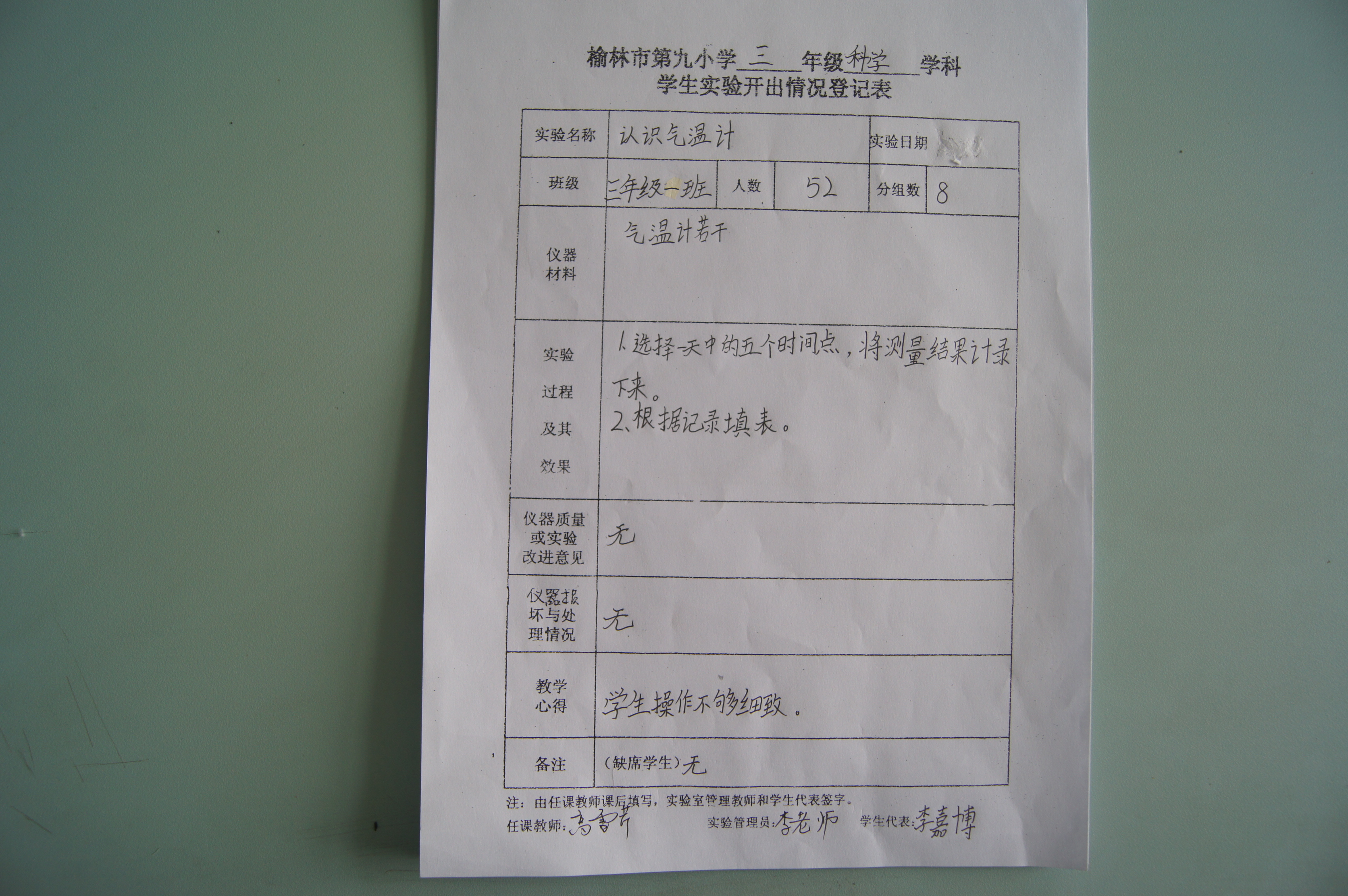 实验登记表