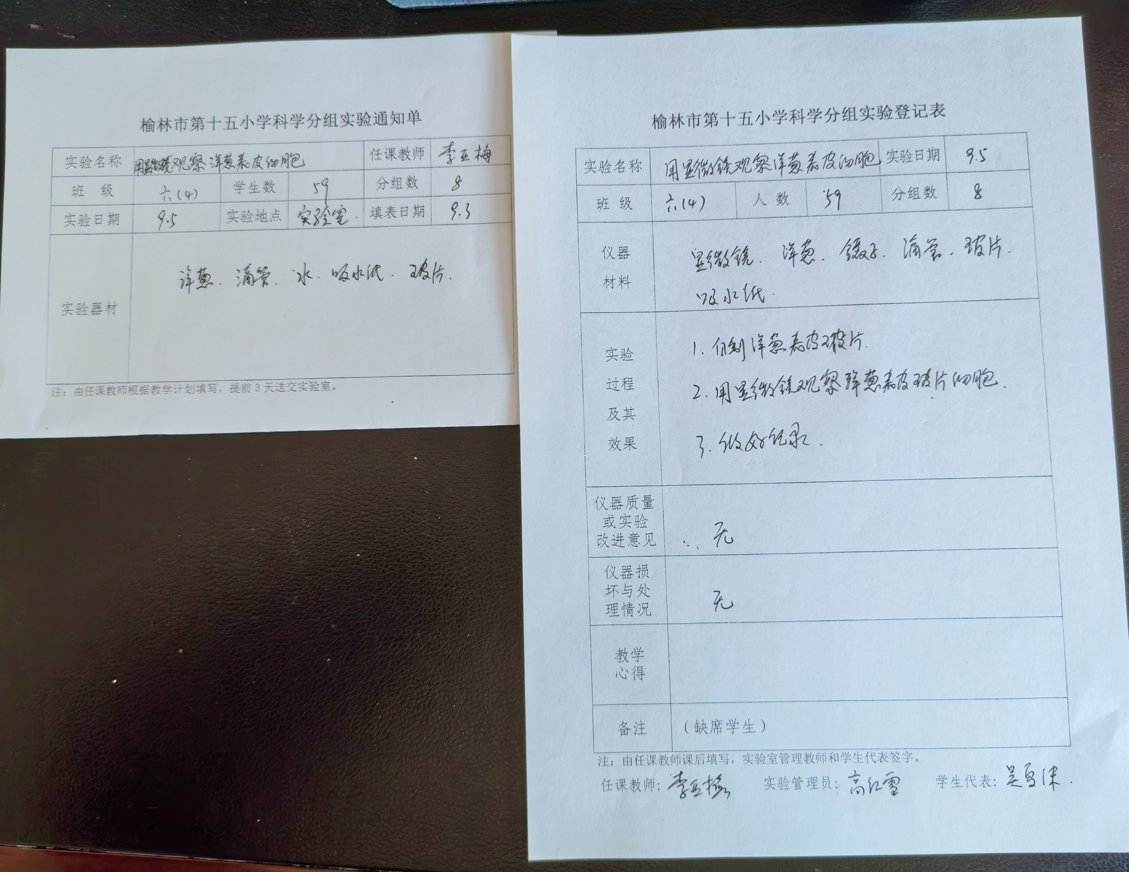 实验登记表