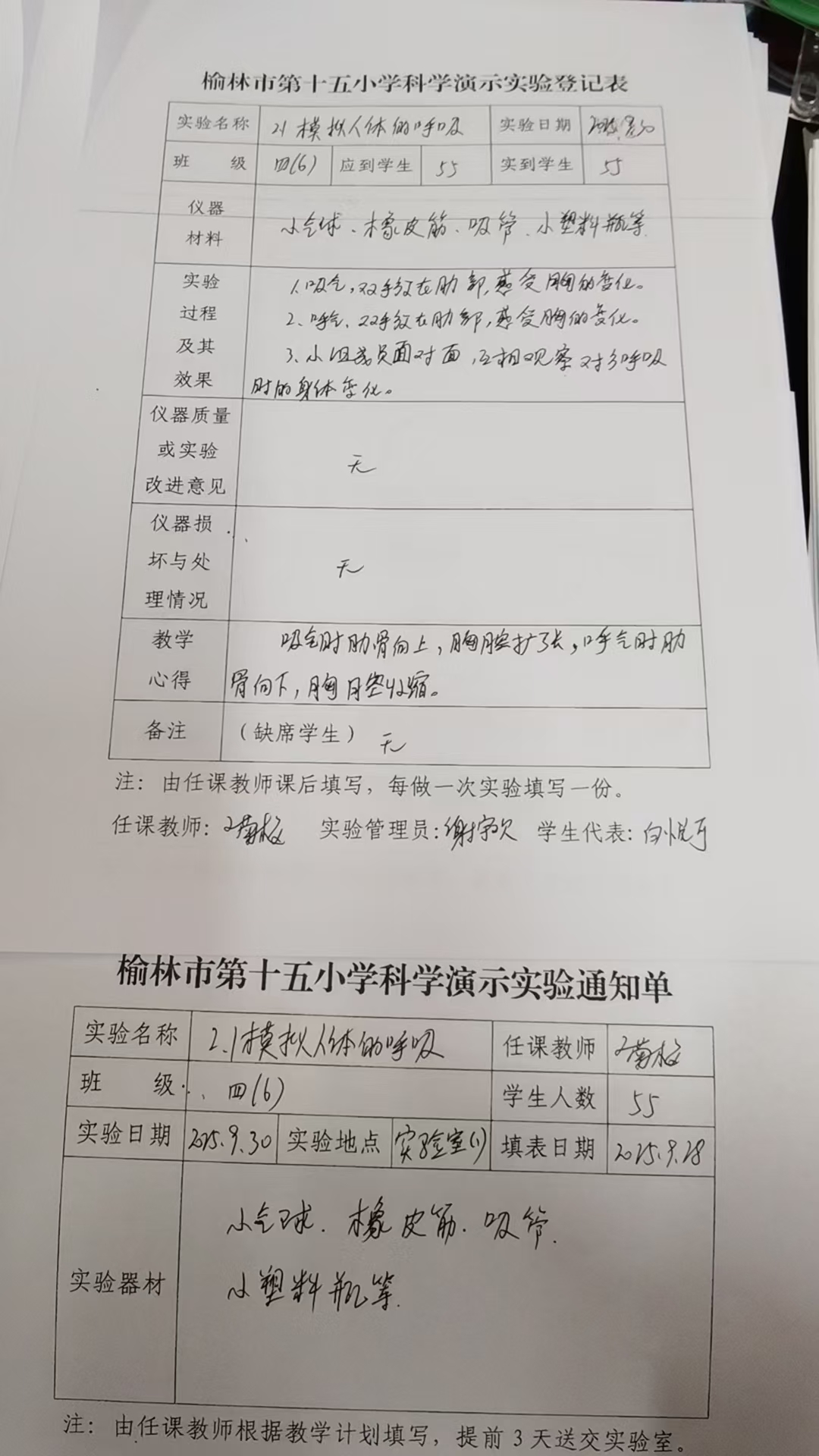实验登记表