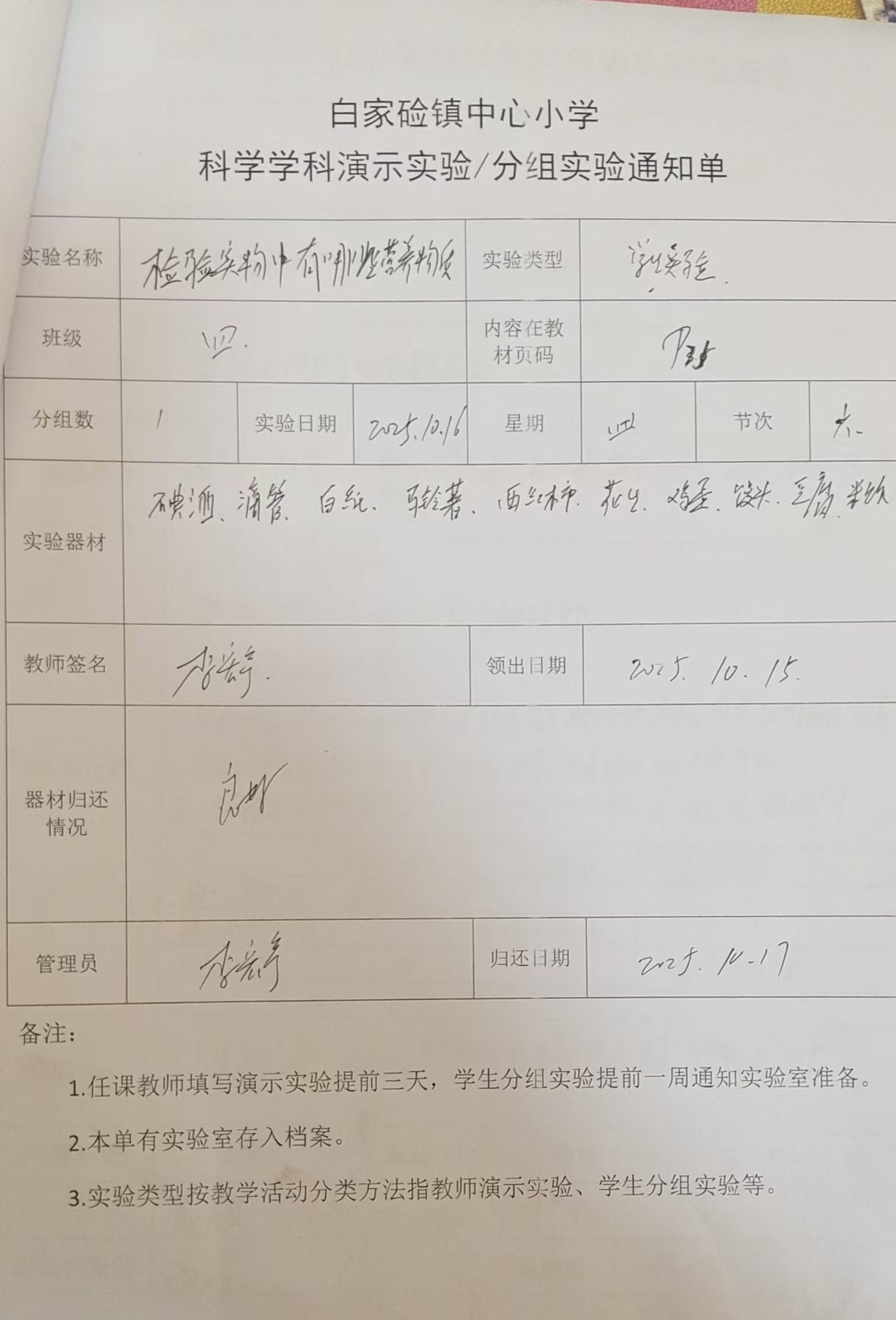 实验登记表