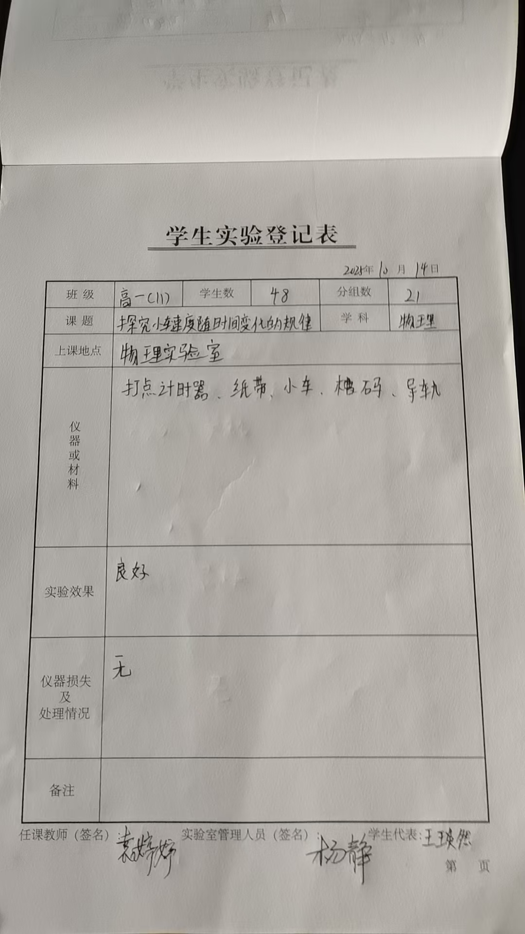 实验登记表