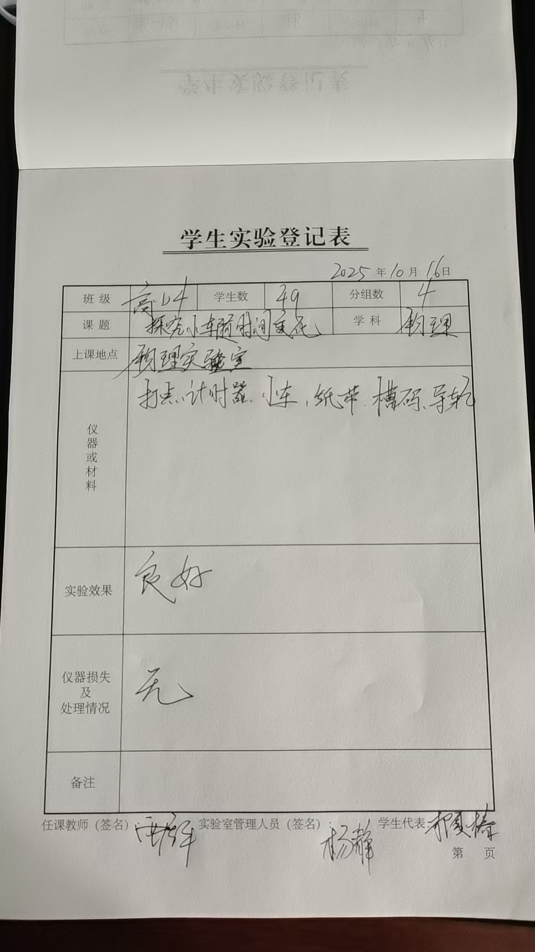 实验登记表
