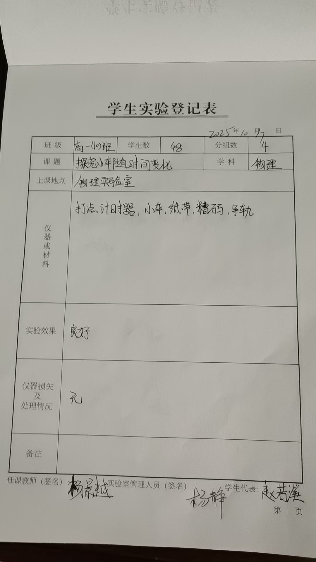 实验登记表