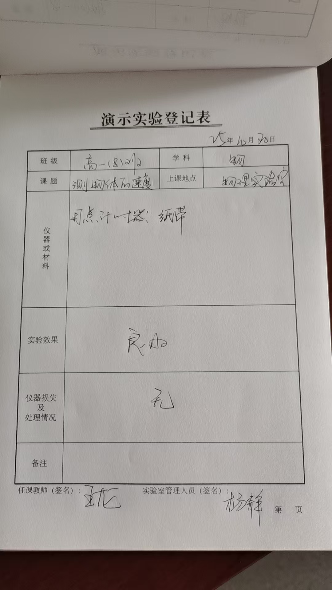 实验登记表