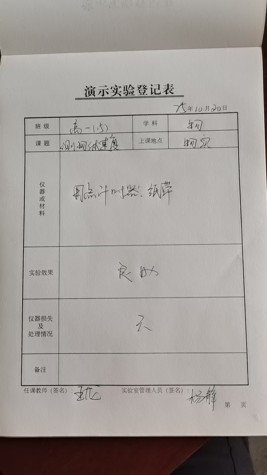 实验登记表