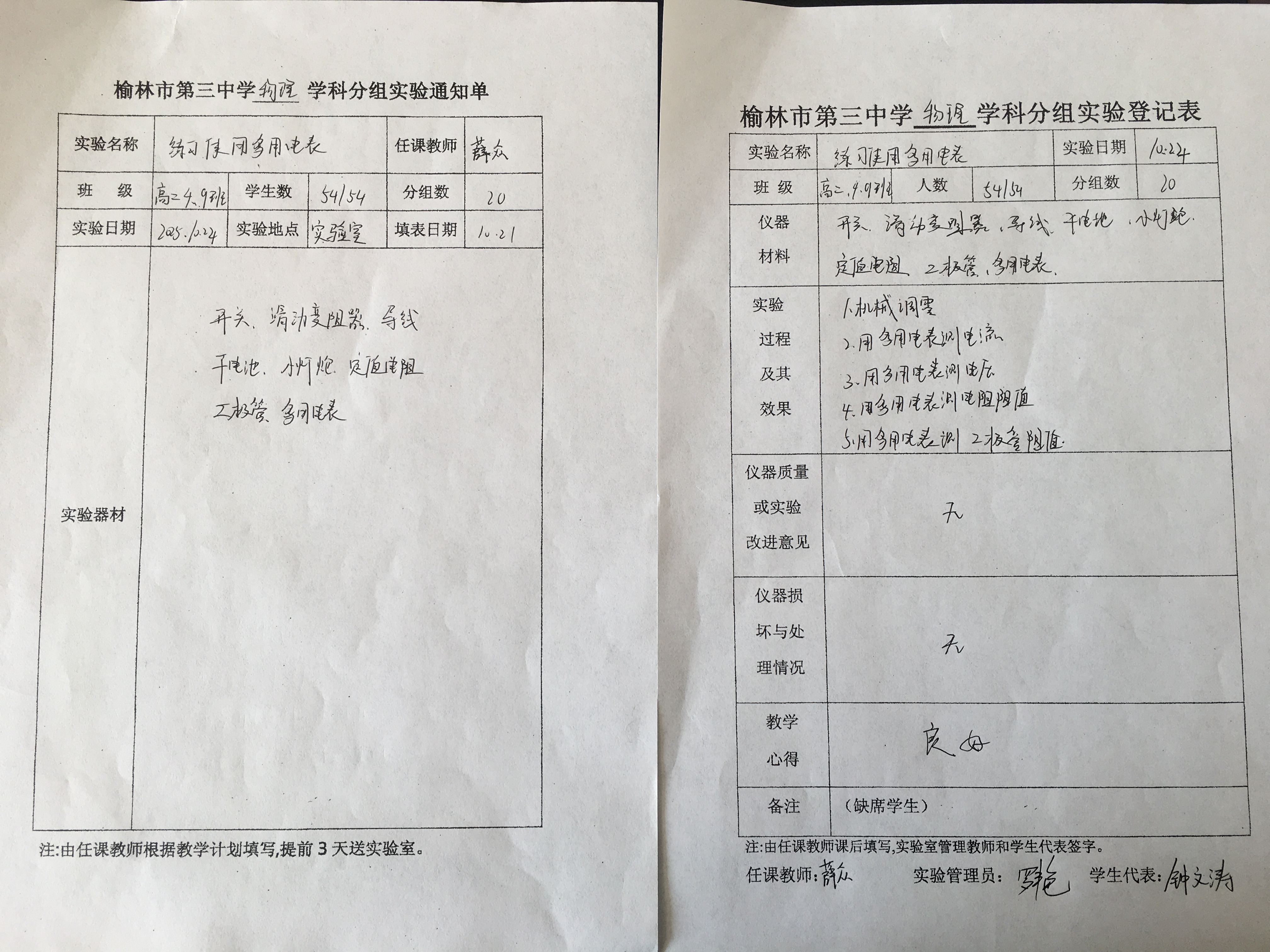 实验登记表