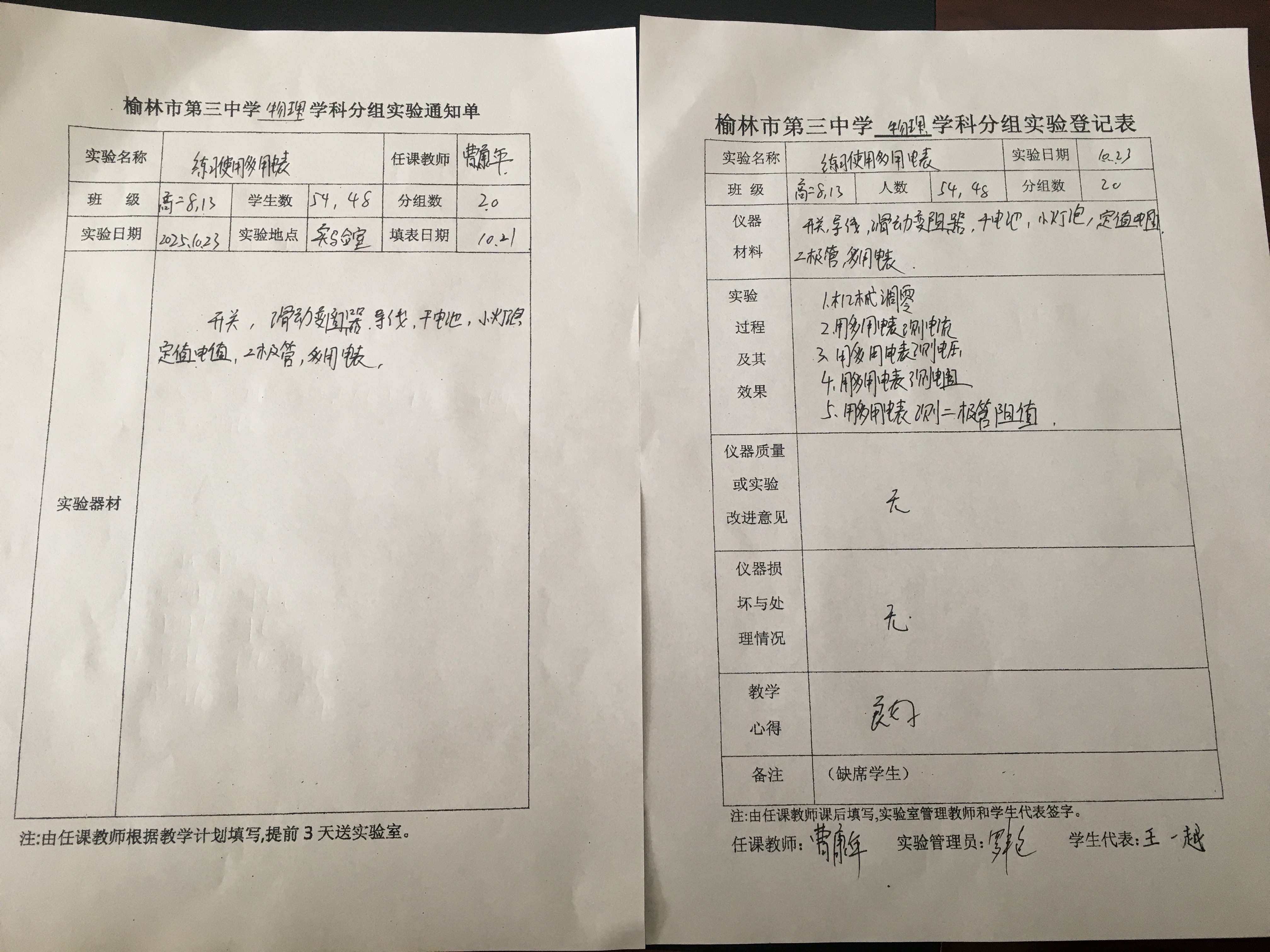 实验登记表