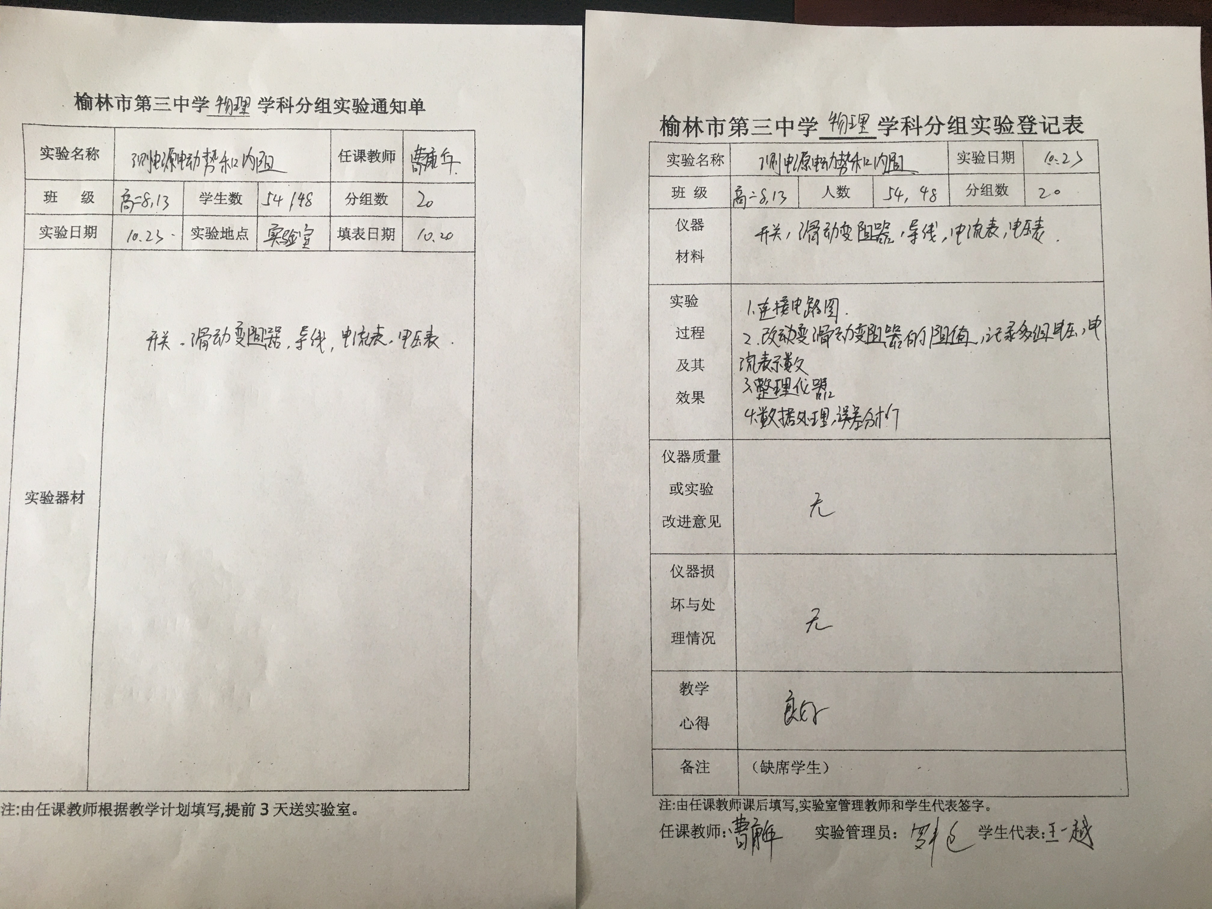 实验登记表