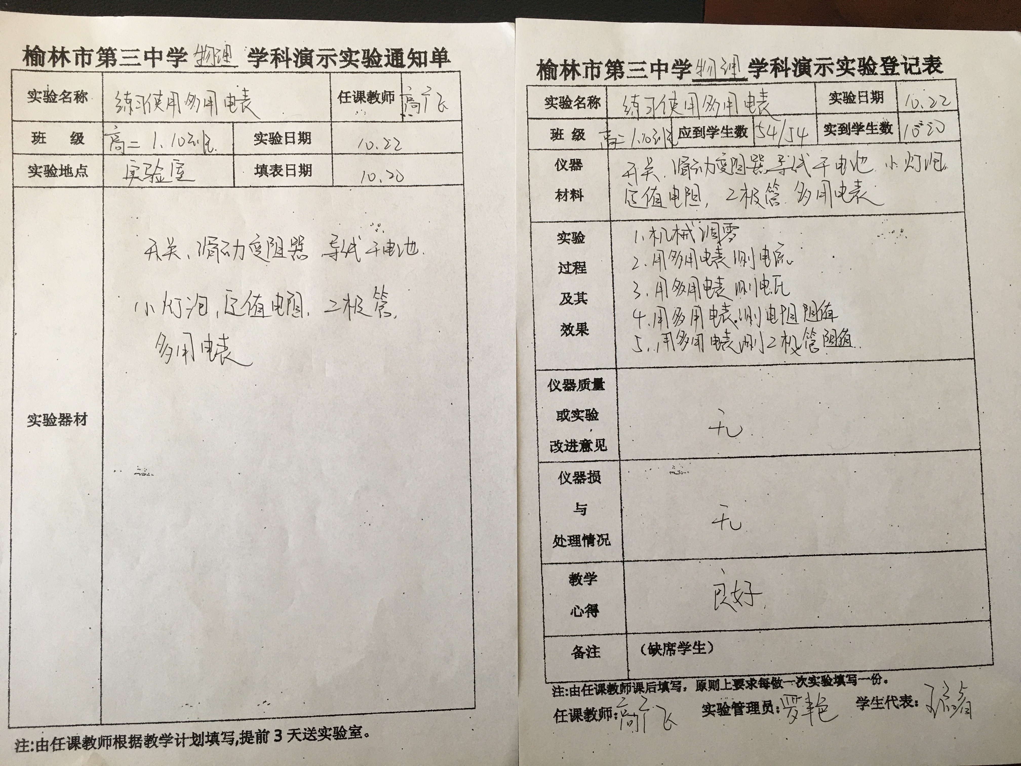 实验登记表