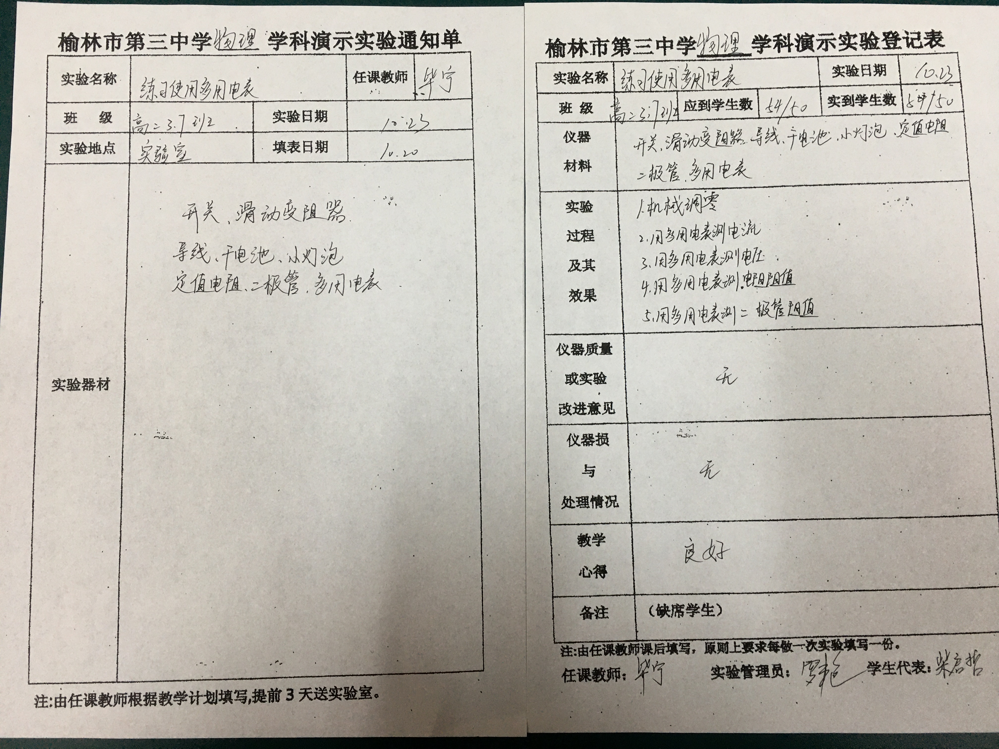 实验登记表