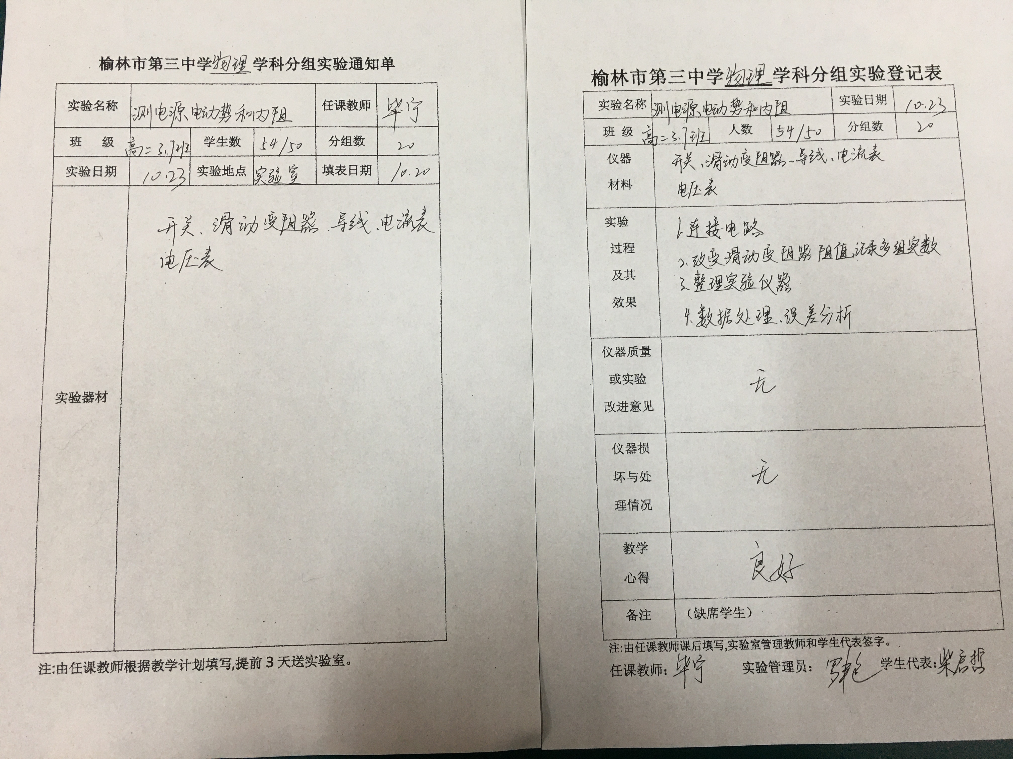 实验登记表