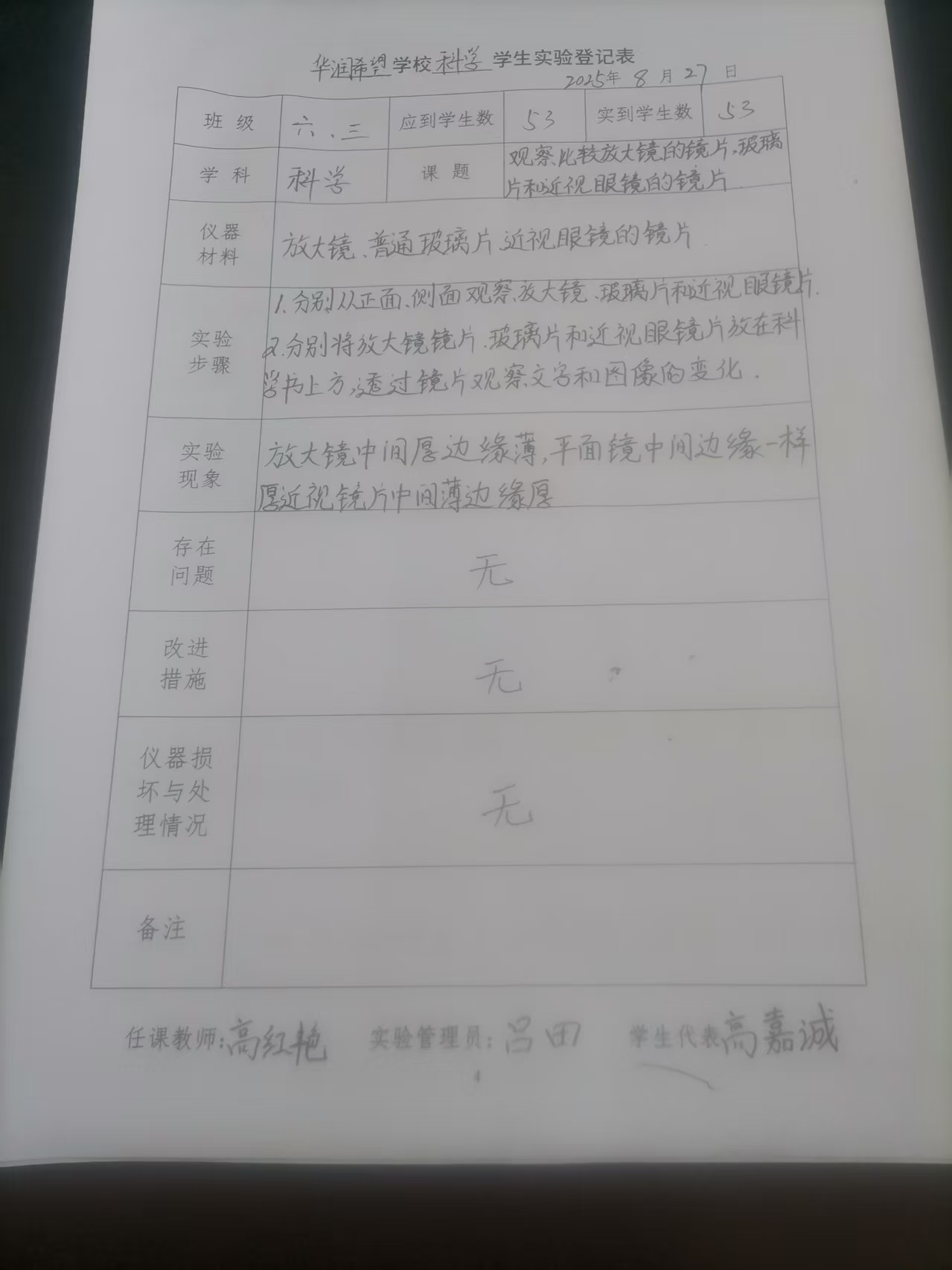 实验登记表