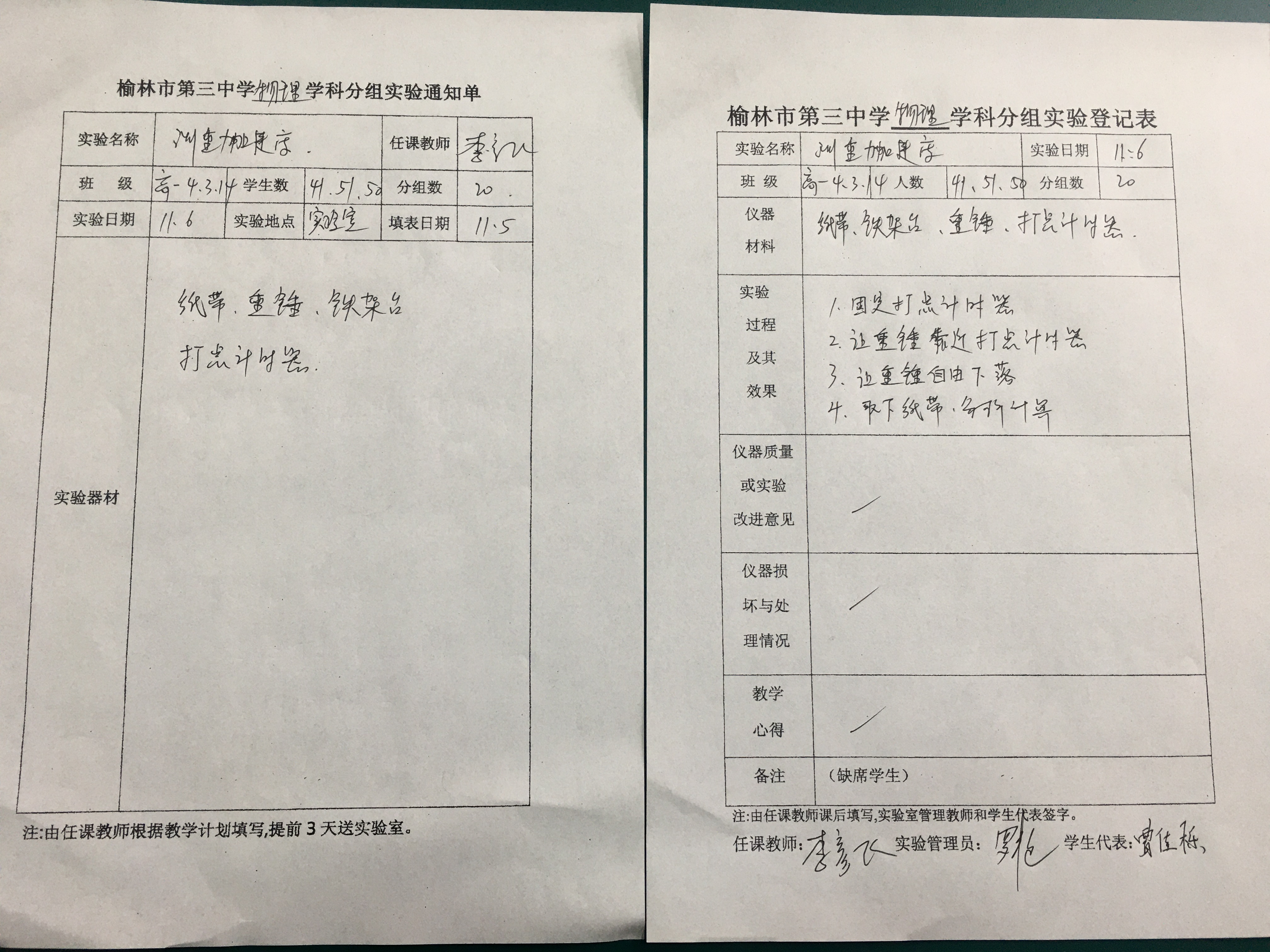 实验登记表