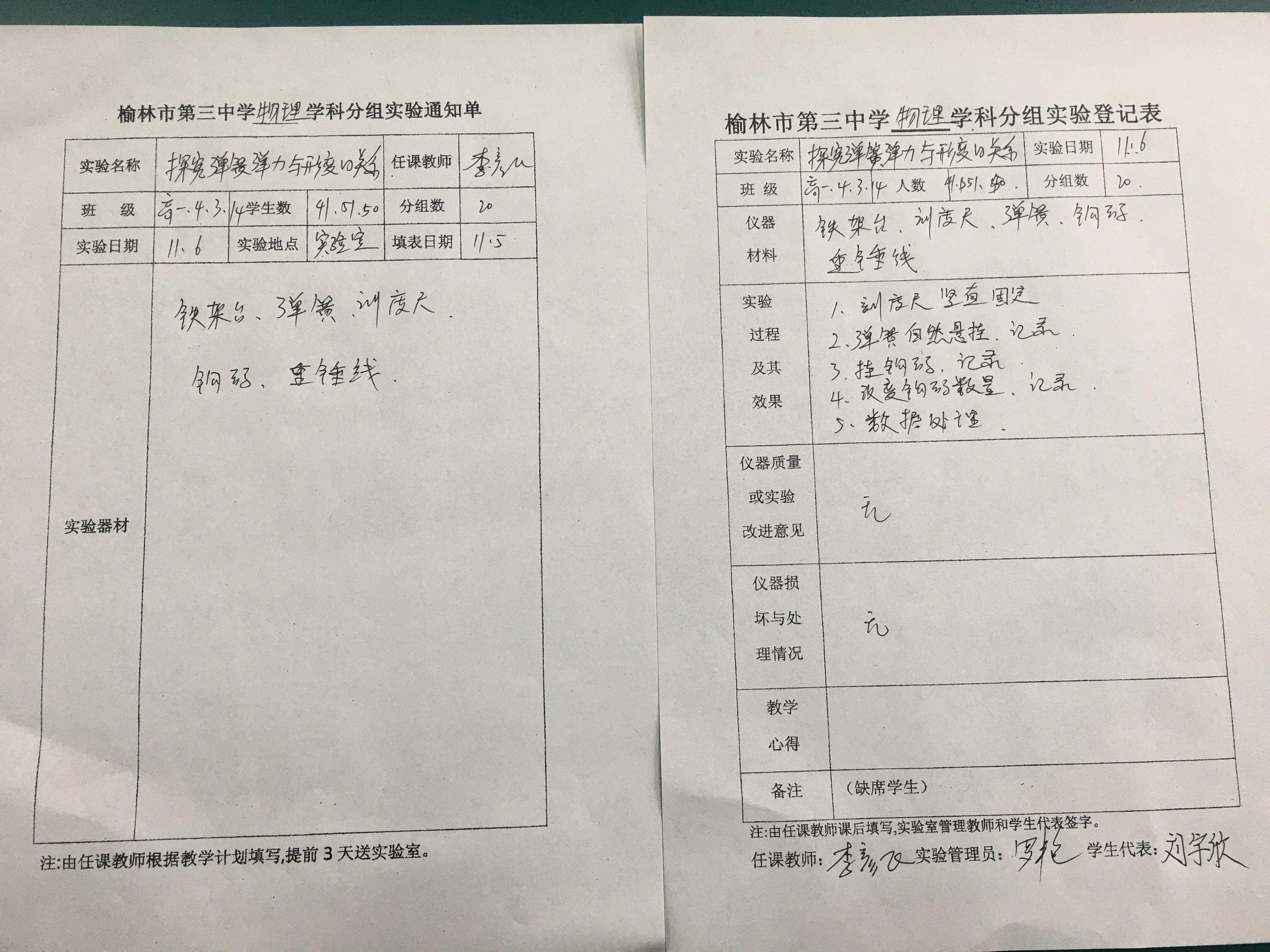 实验登记表