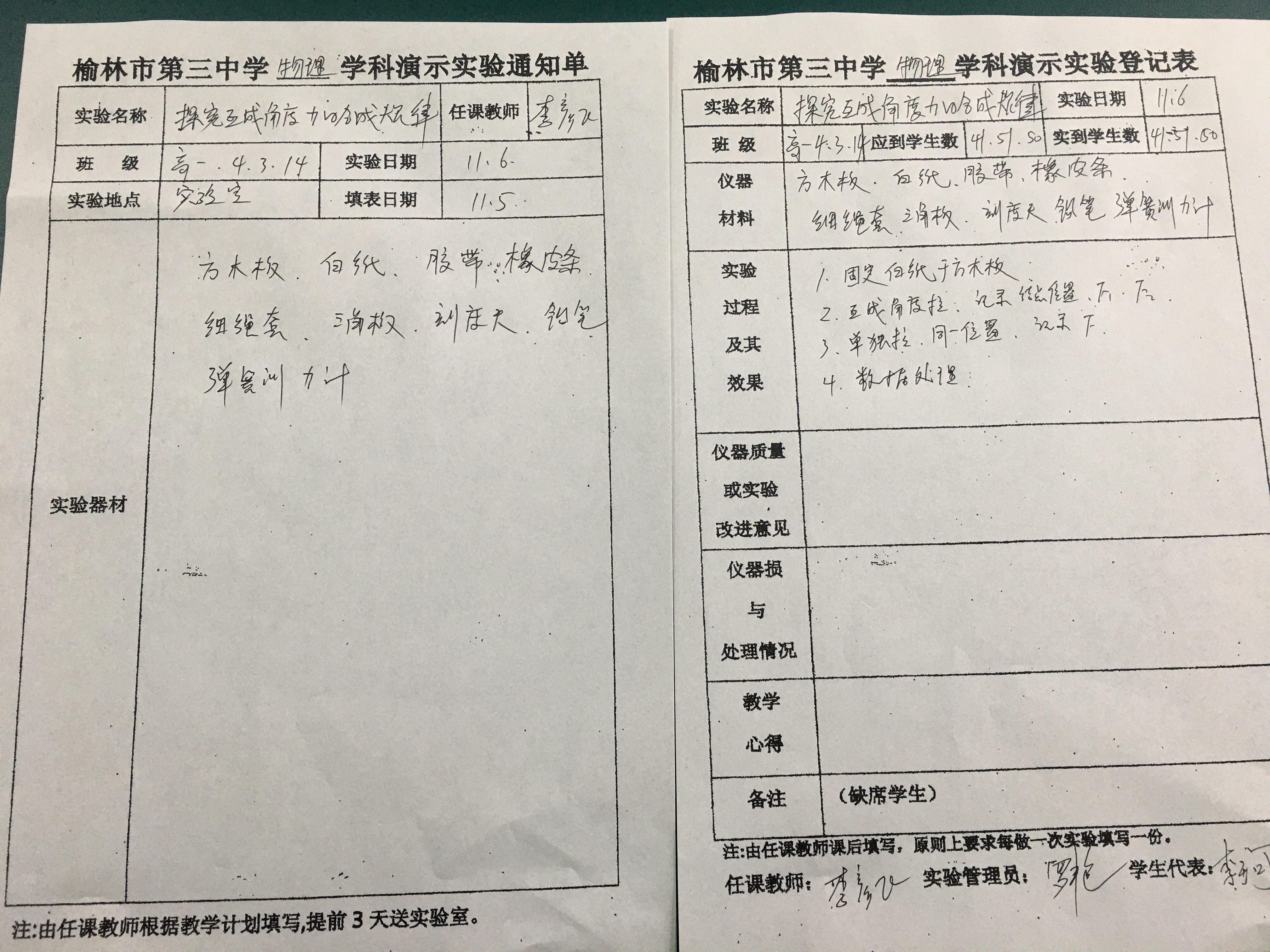 实验登记表