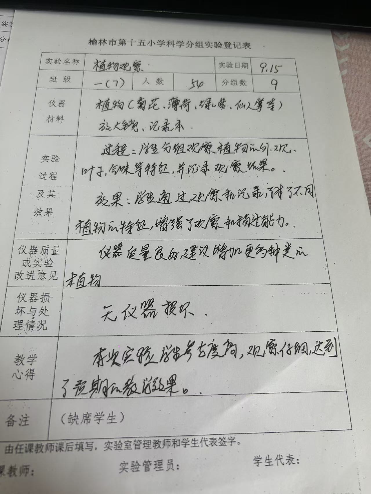 实验登记表
