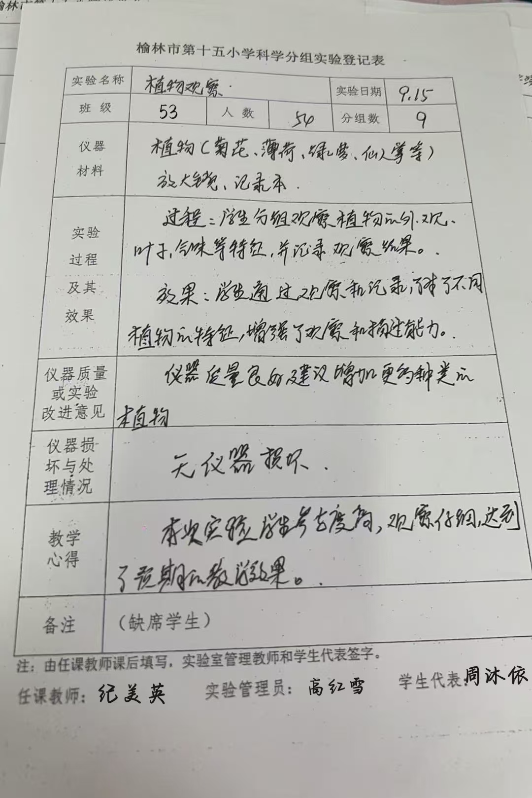 实验登记表