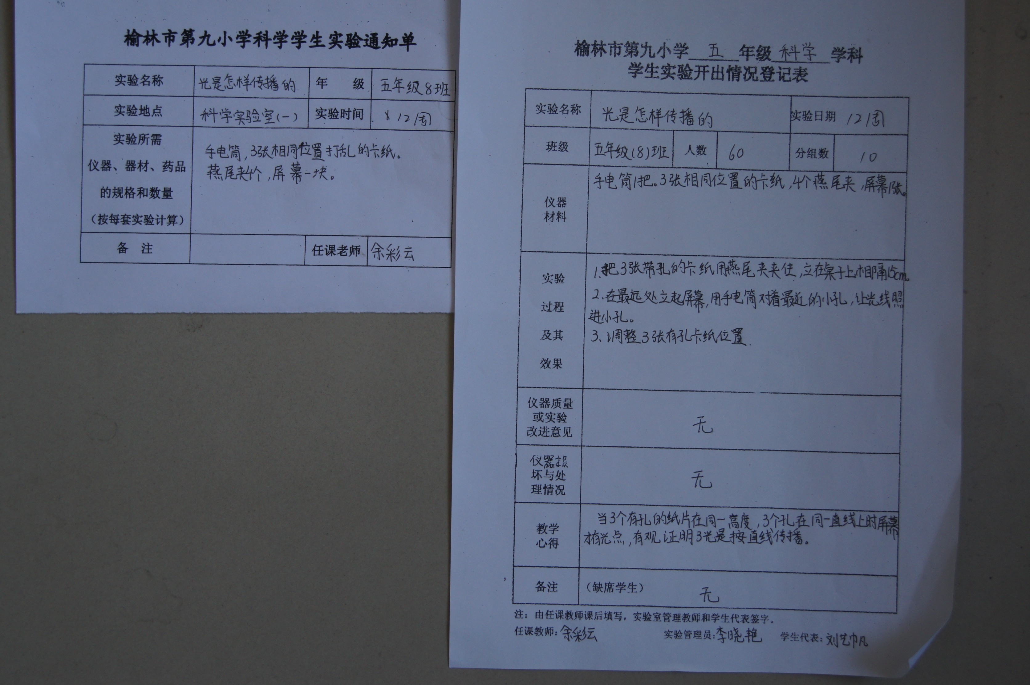 实验登记表