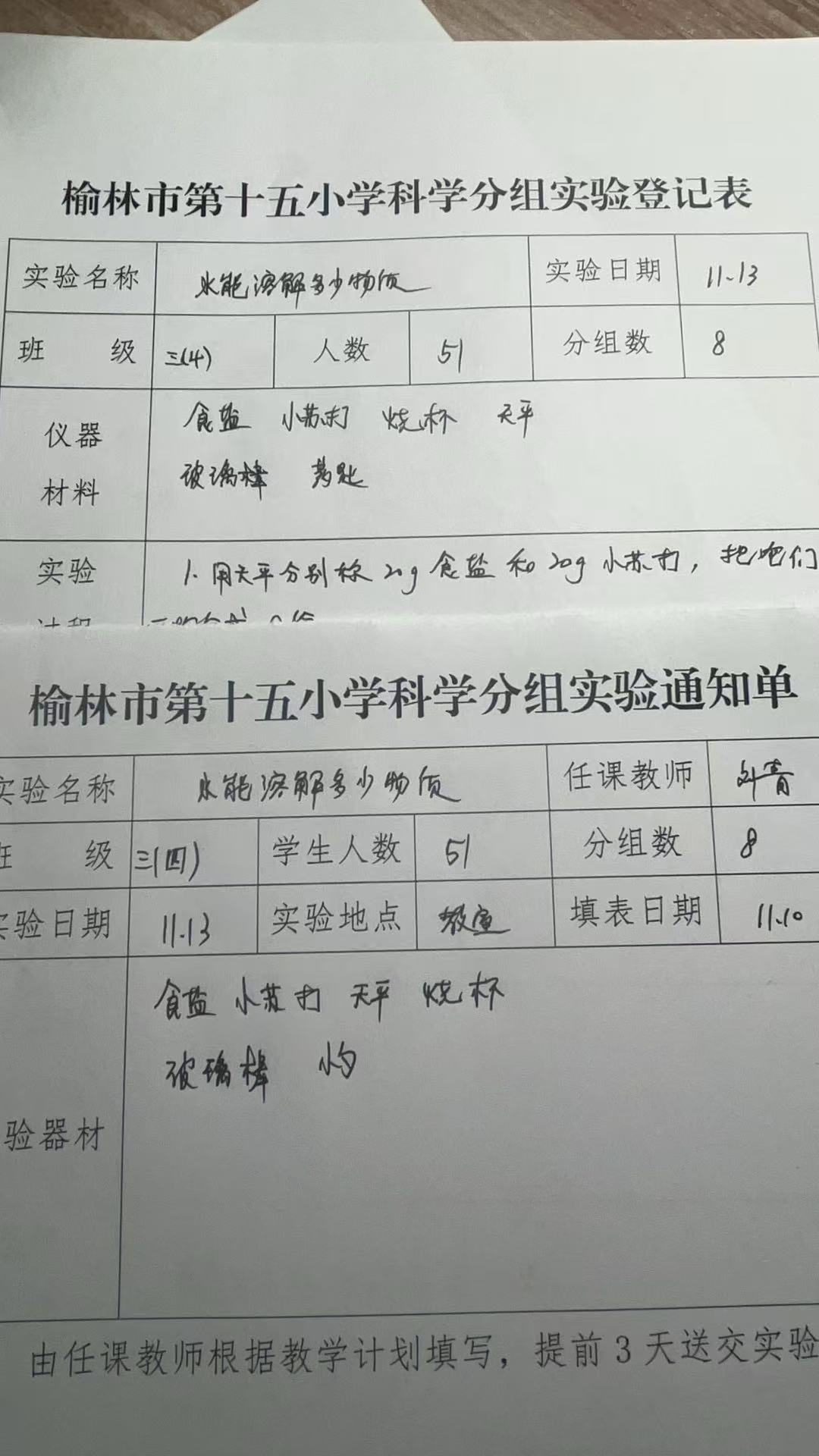 实验登记表