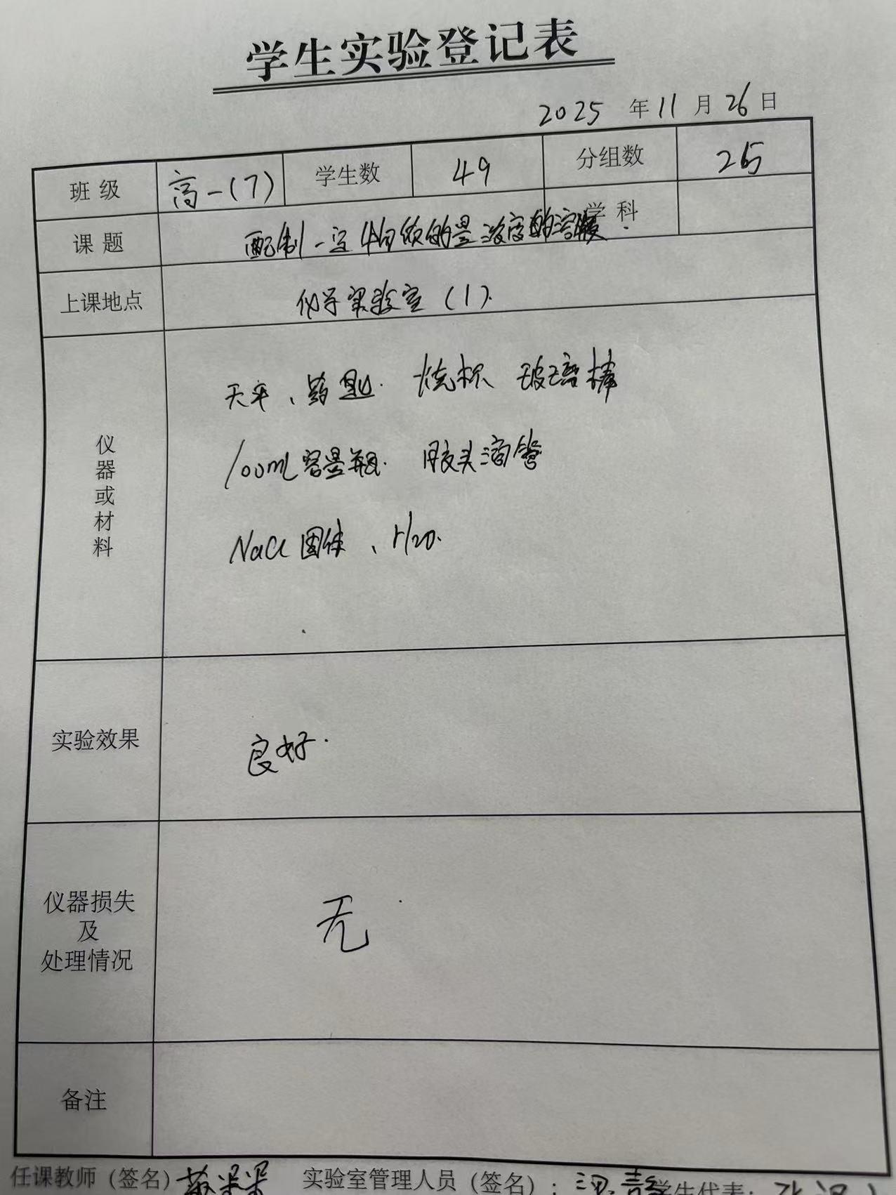 实验登记表