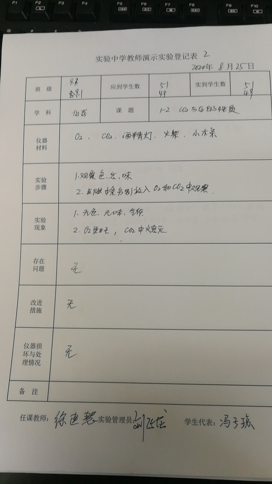 实验登记表