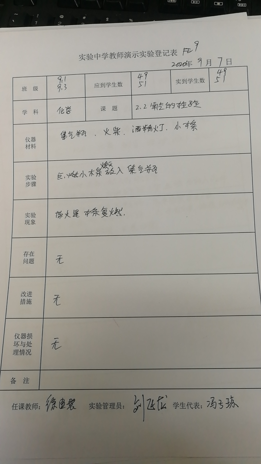 实验登记表
