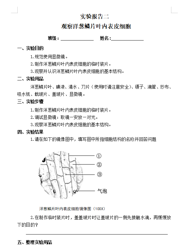 制作并观察植物细胞临时装片