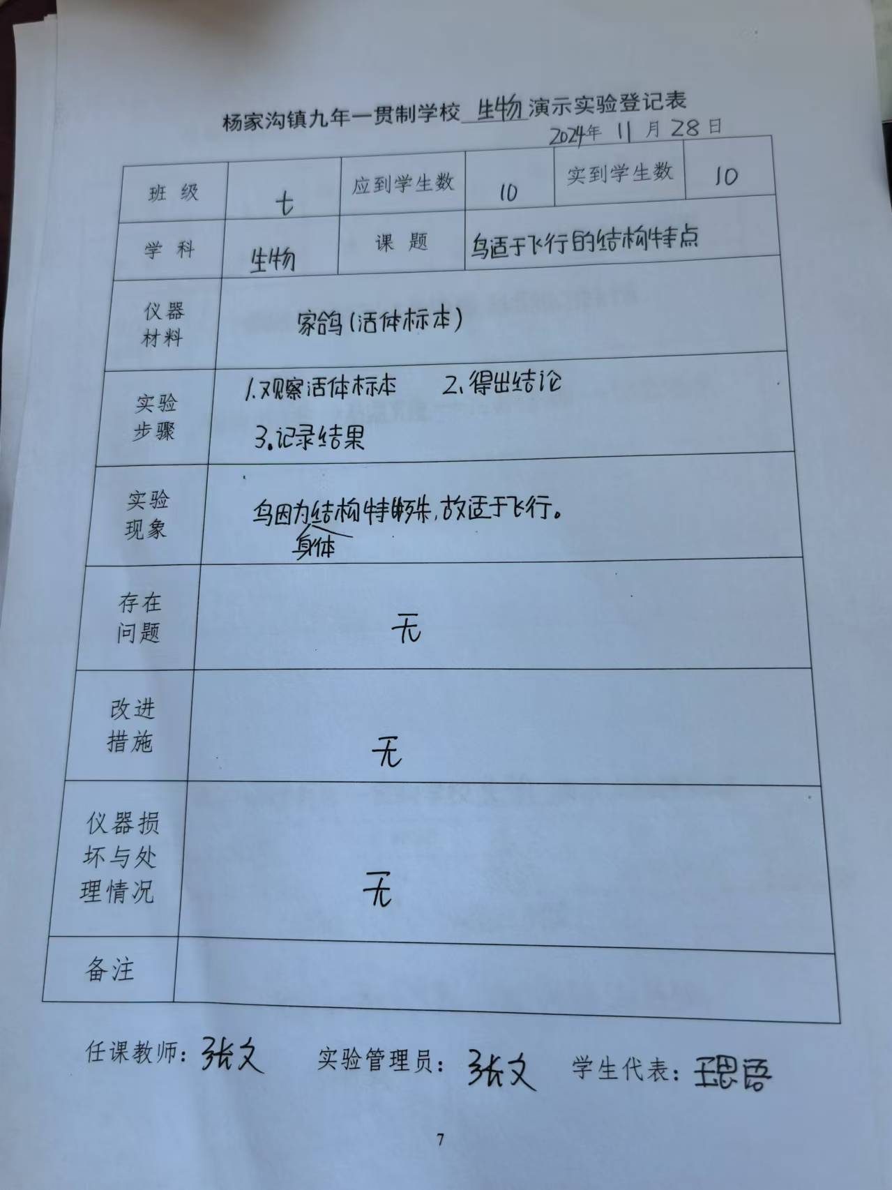 实验登记表