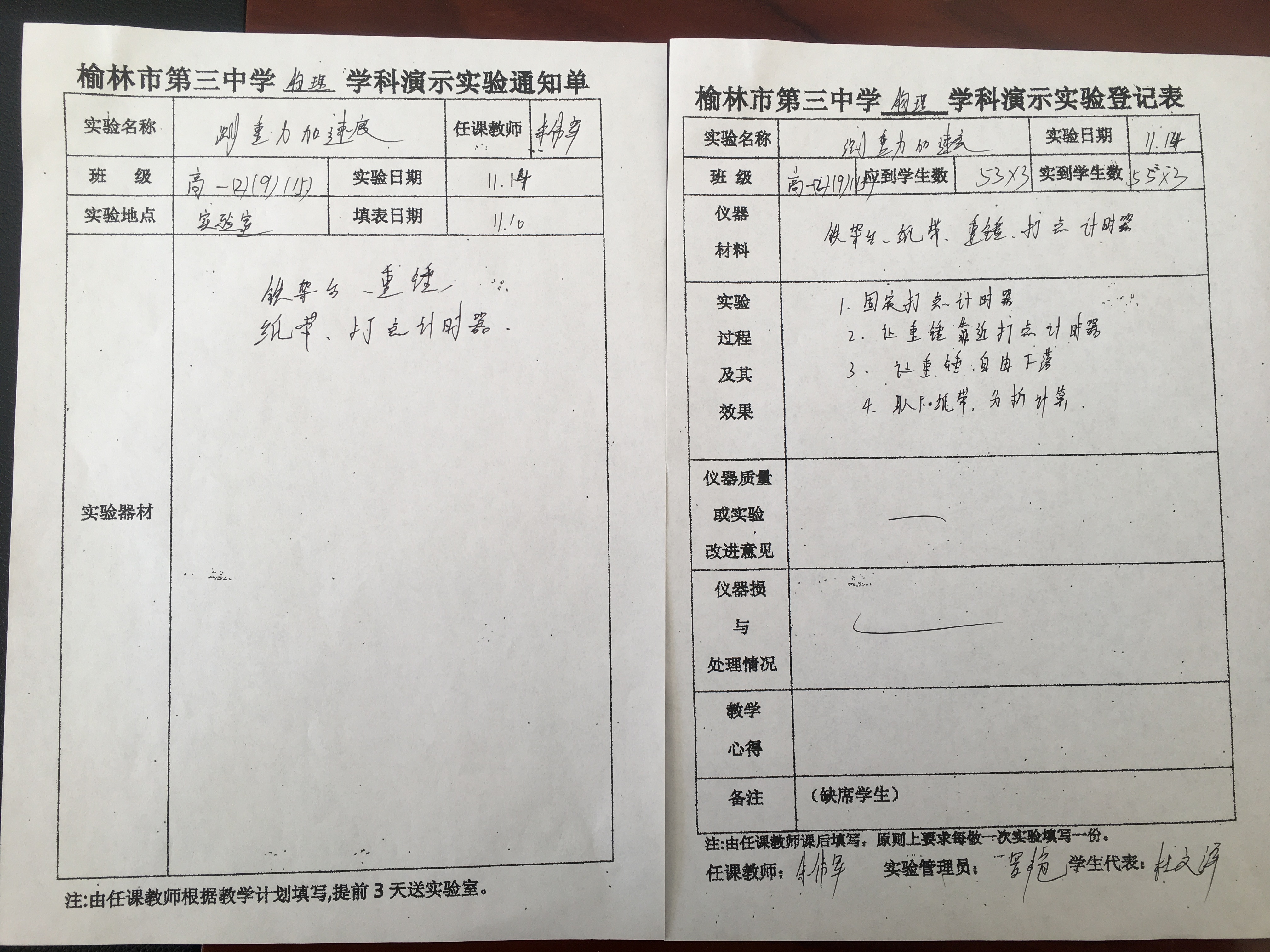 实验登记表