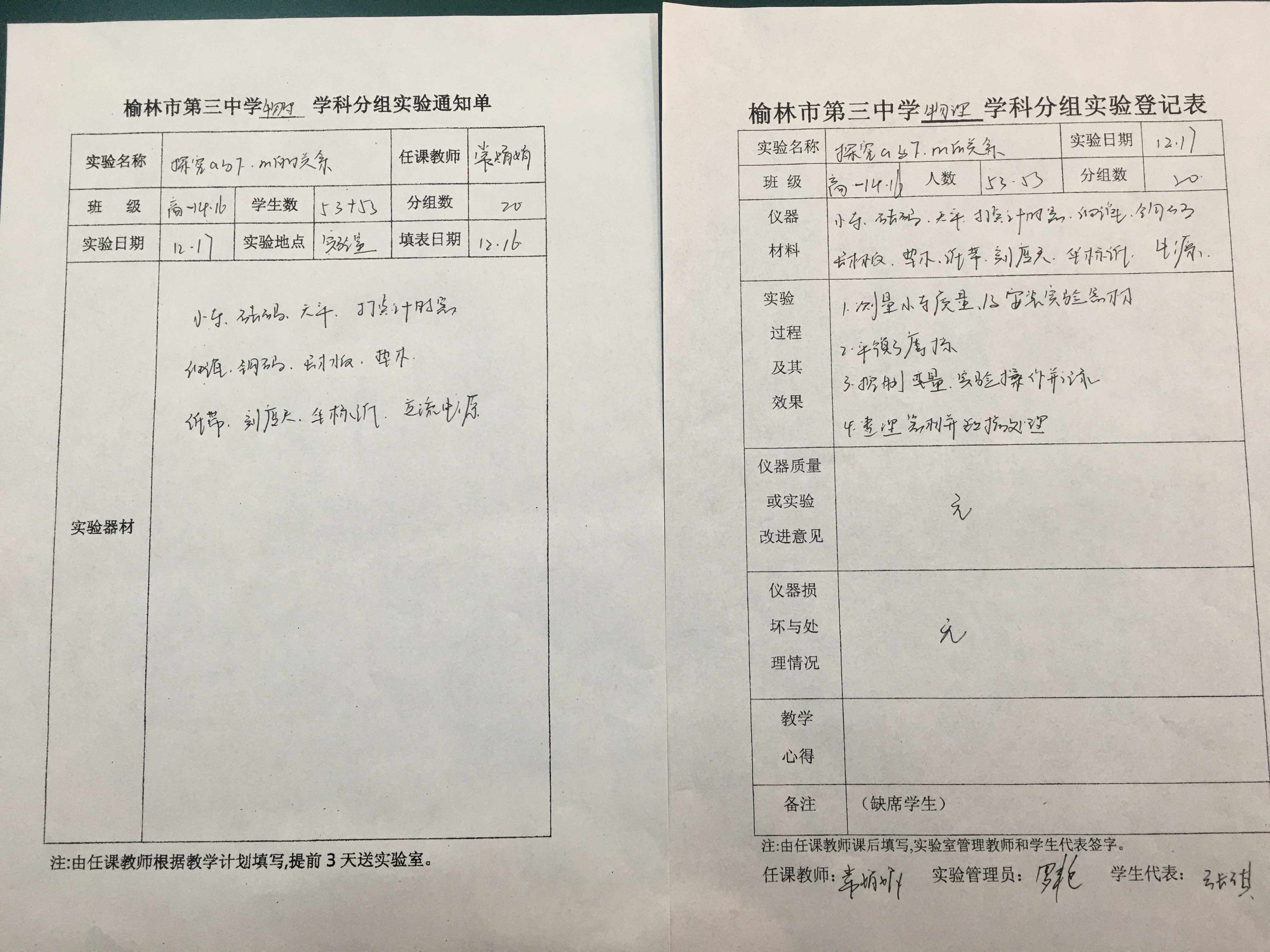 实验登记表